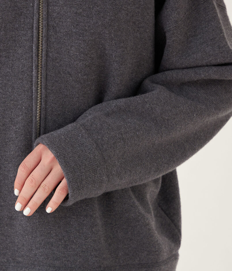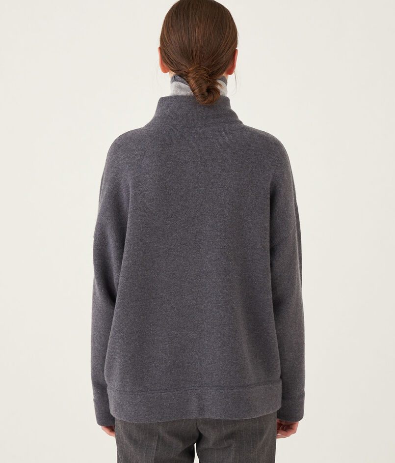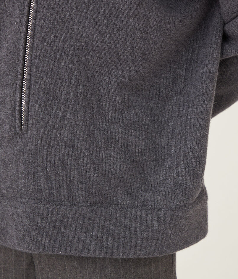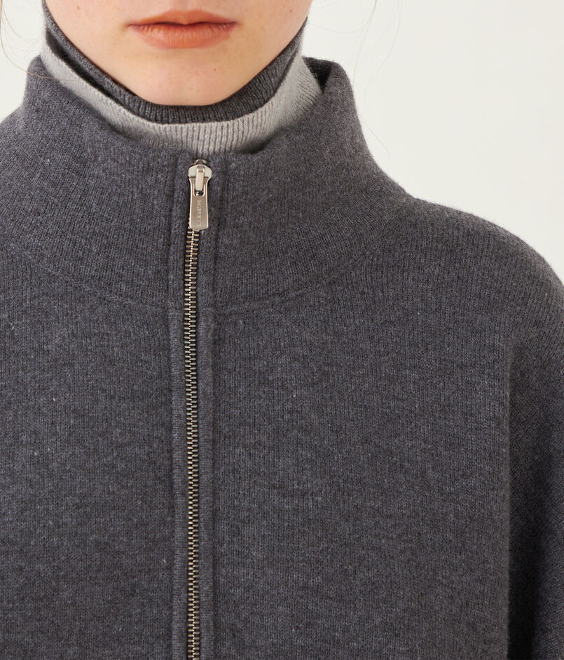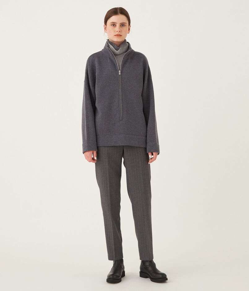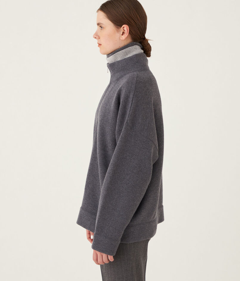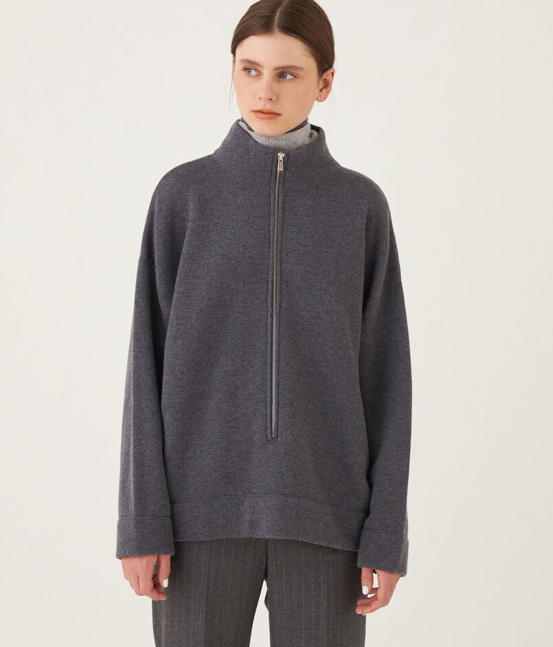 ハイネックと深めのジップアップのデザインでスポーティーなバランスに。