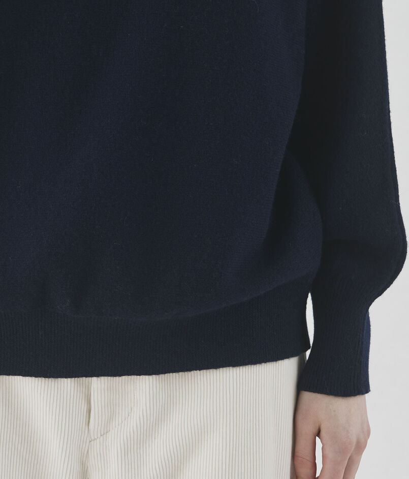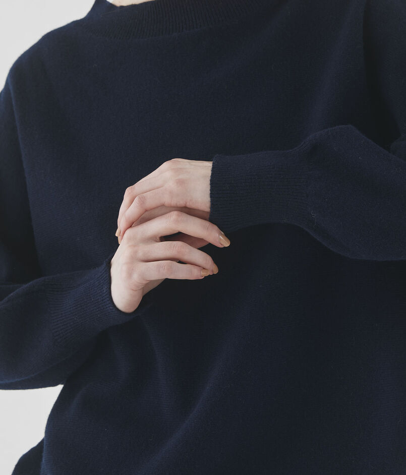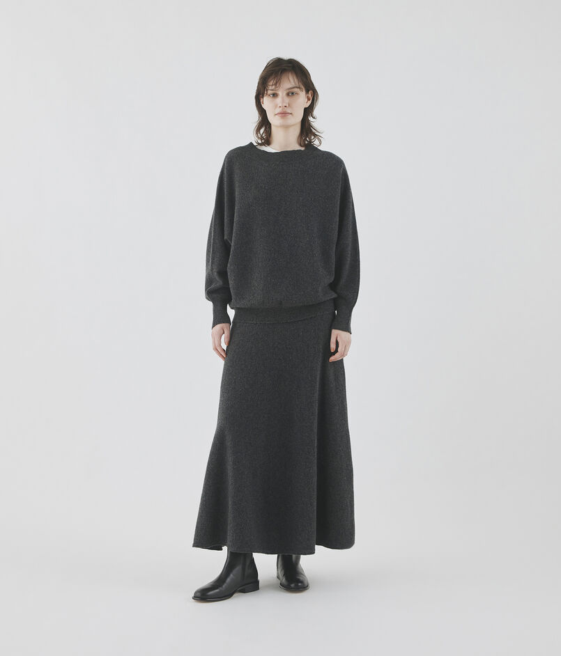 裾をリブで締めることで着用すると自然な丸みが生まれ、スカートやパンツなどさまざまなボトムスともバランスよく合わせていただけます。