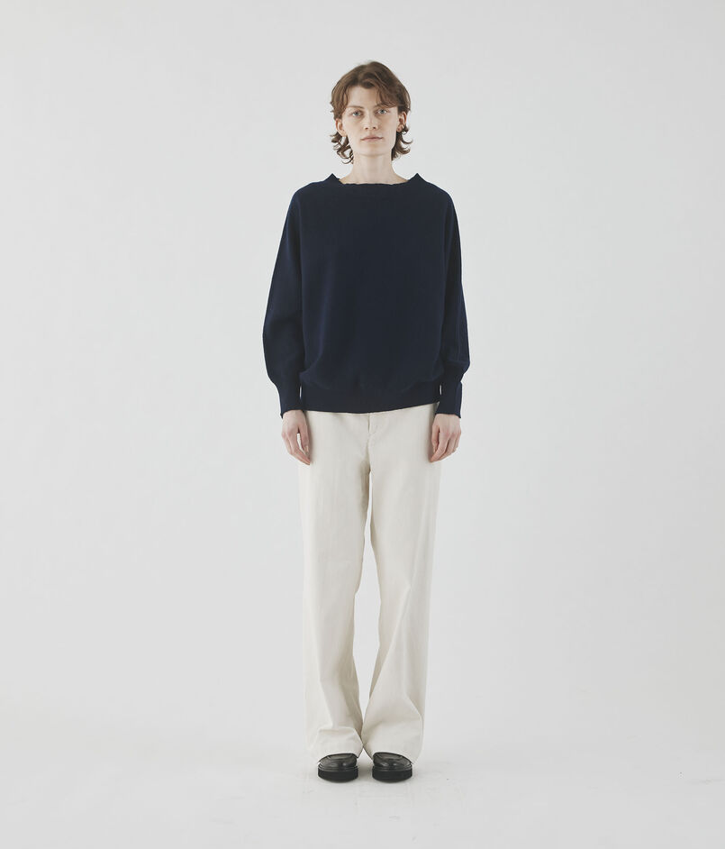 プルオーバーはリラックス感のあるボックスシルエットに広めのネックラインで抜け感たっぷりの一着。