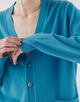 フロントに連ねた貝ボタンもこだわりのポイントです。