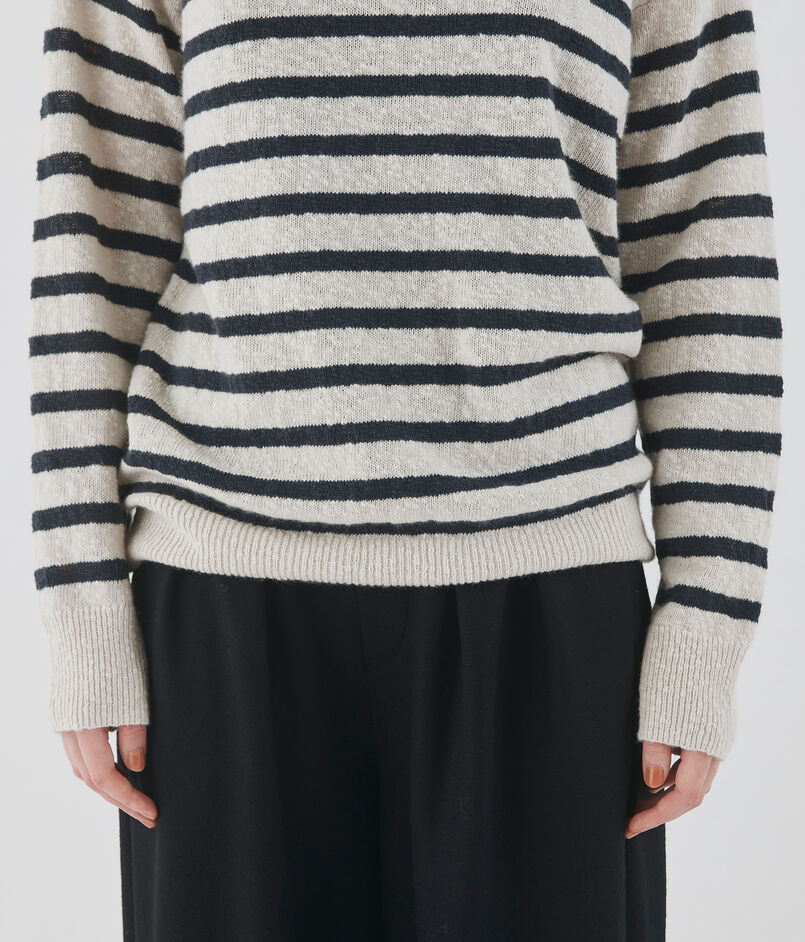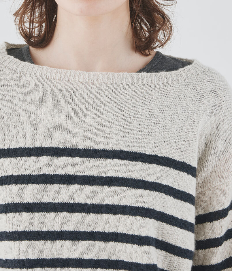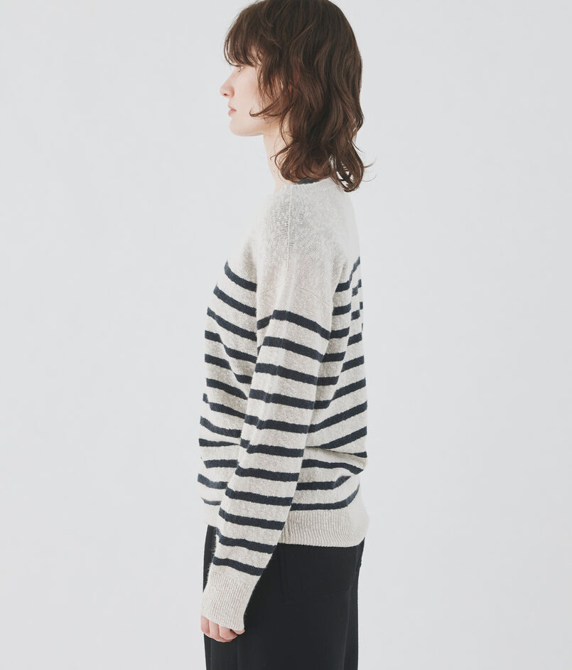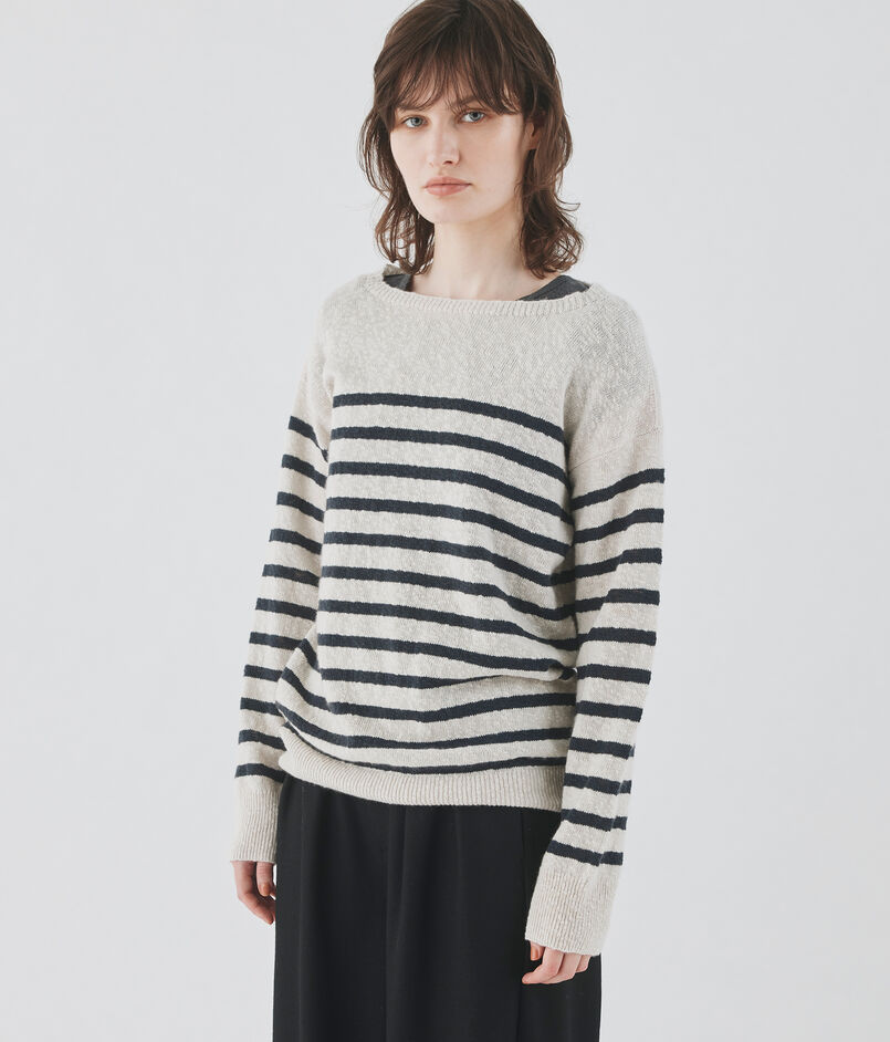 ストレート糸とは異なるぼこぼことした凹凸感が特徴のカシミヤウールのスラブヤーンで織り上げた、個性的な表情が魅力のプルオーバー。