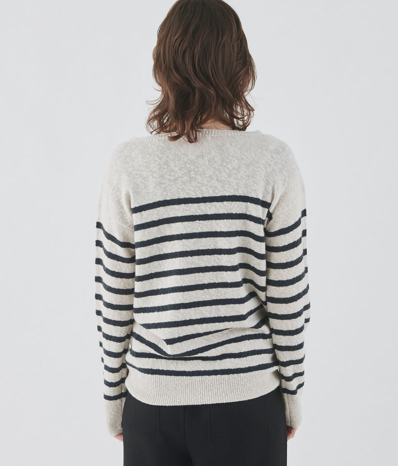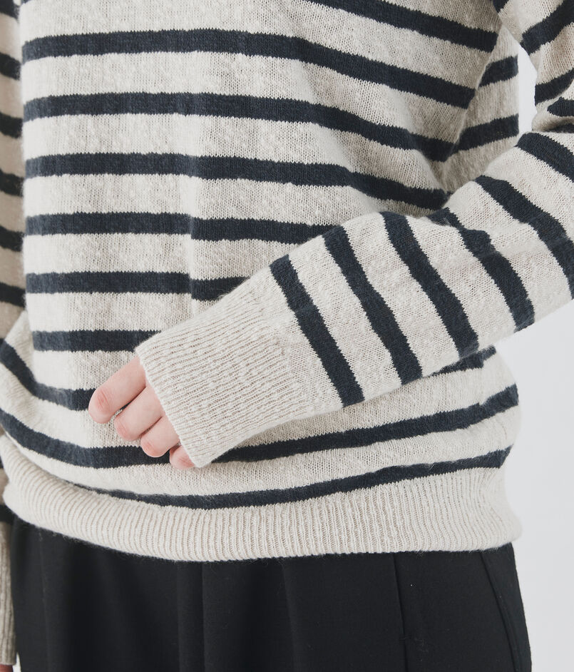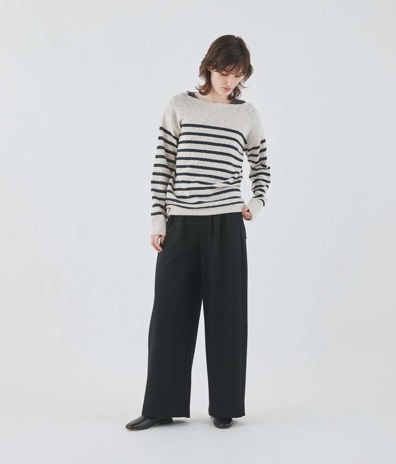 裾のリブ使いで着用すると自然な丸みが生まれ、さまざまなボトムスとバランスよく合わせていただけます。