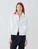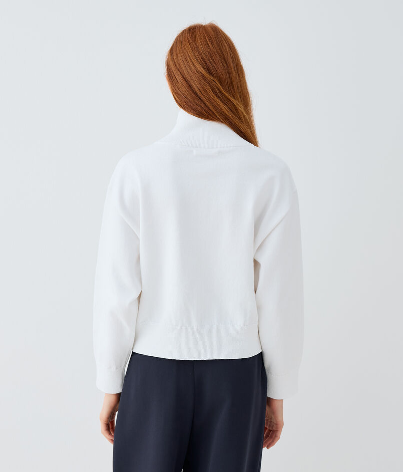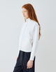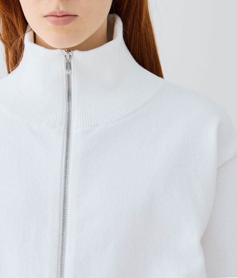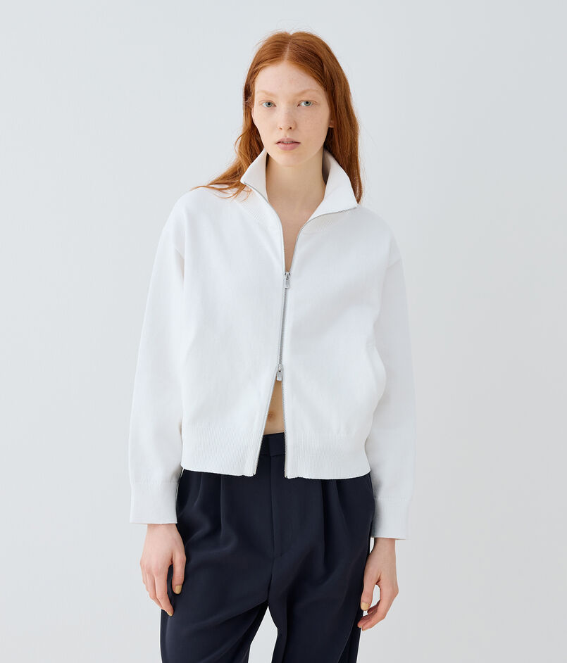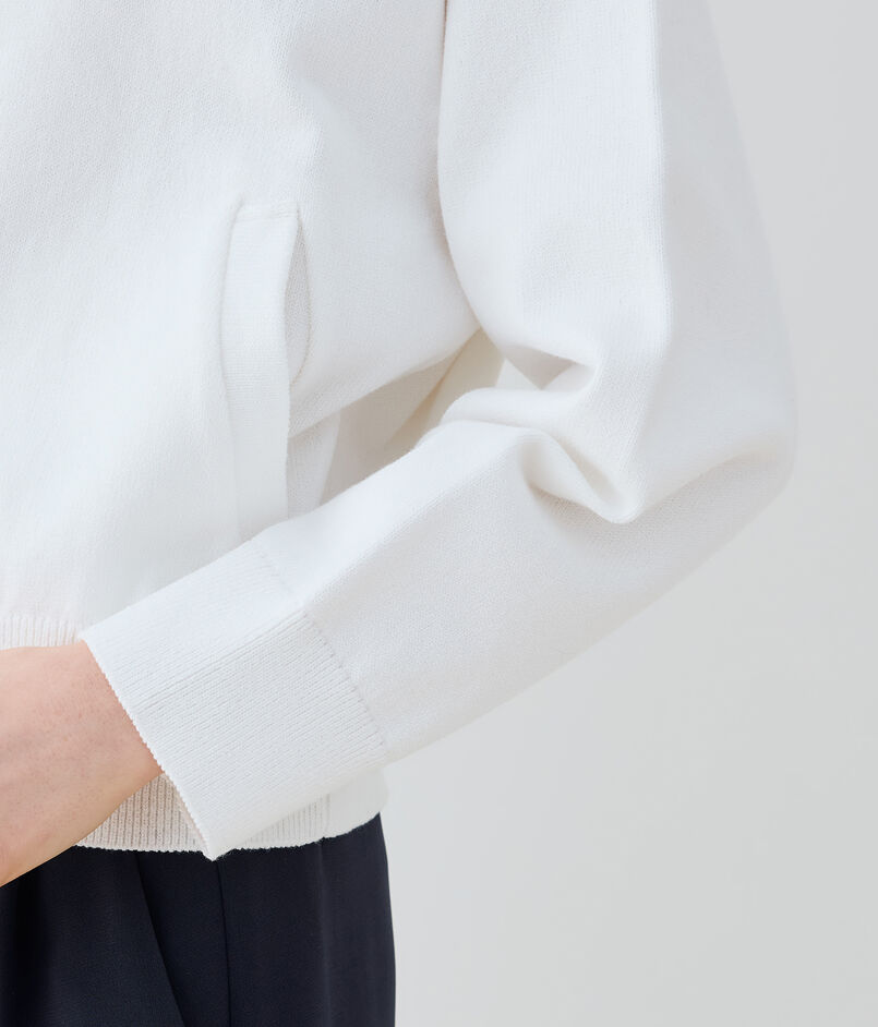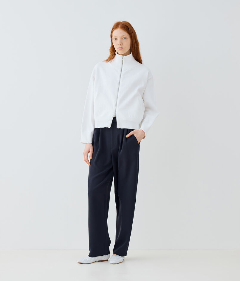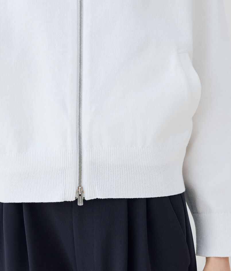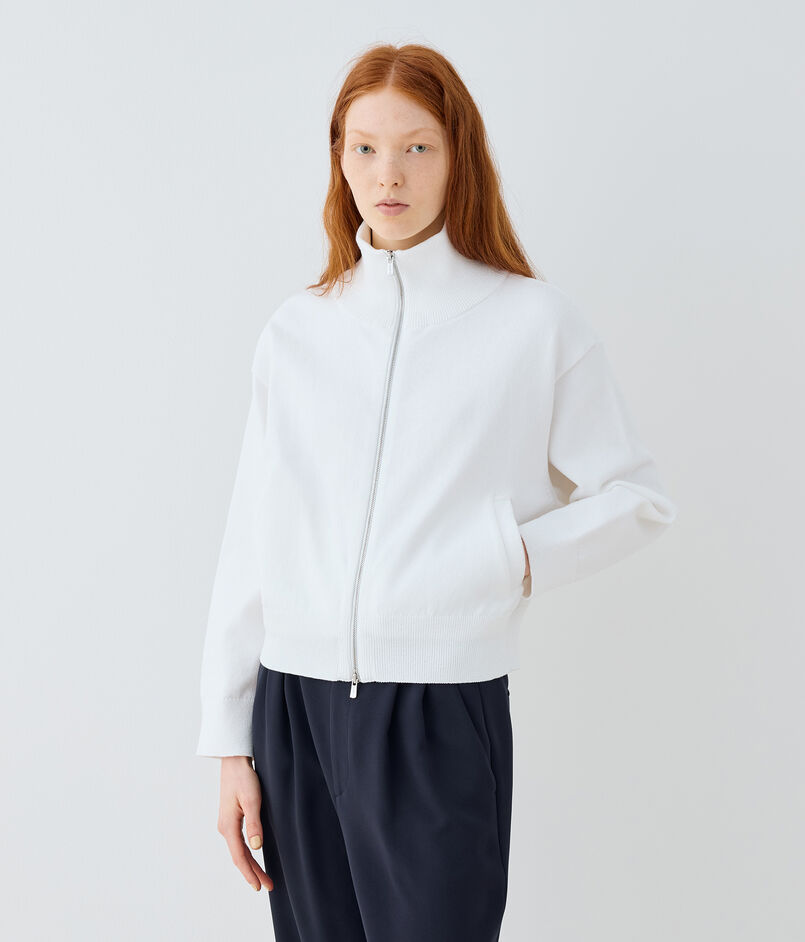 羽織りとしてはもちろん、深めにジップを下げて後ろに抜いてセーラカラーのようにするなど、気分や着こなしに合わせてバランスをアレンジいただけます。