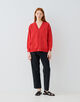Tシャツやワンピースなどの上にさらりと羽織るのはもちろん、フロントを留めてプルオーバーのように着こなすのもおすすめです。