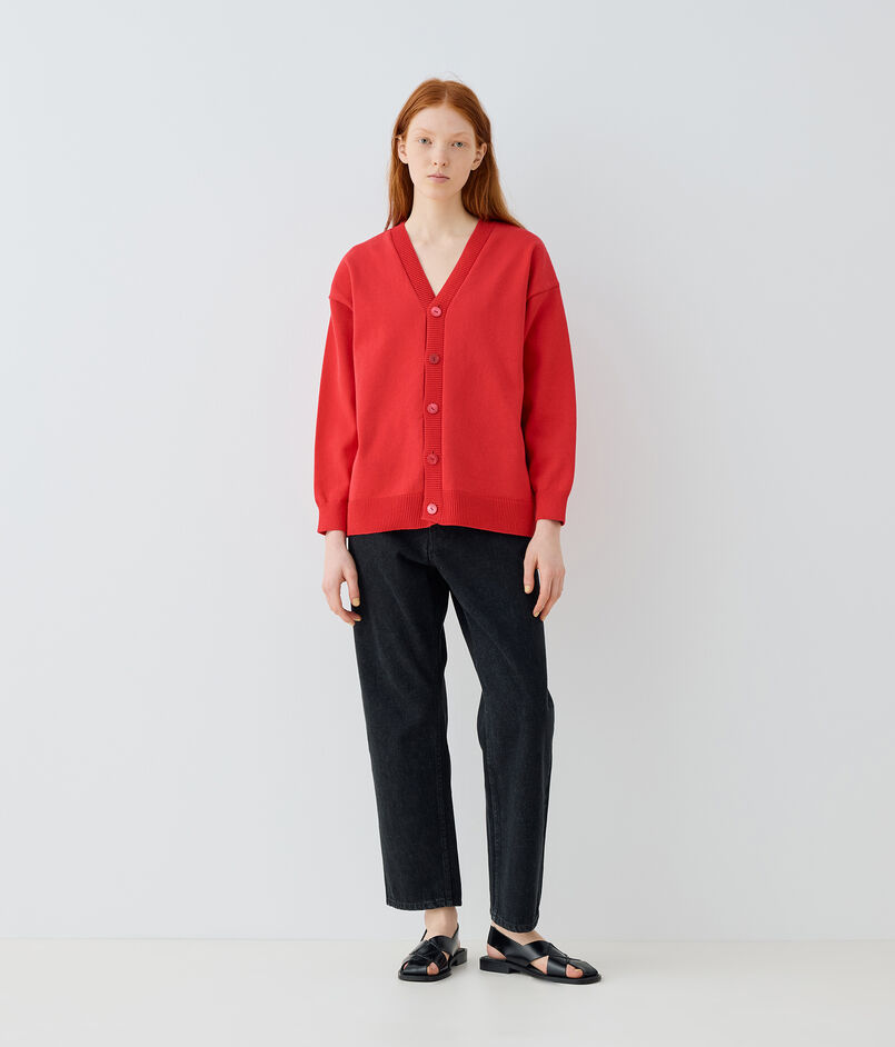 ゆったりとしたオーバーサイズのカーディガンは、背中がコクーンシルエットで着用した際にニュアンスの出る一枚。