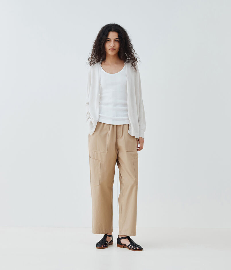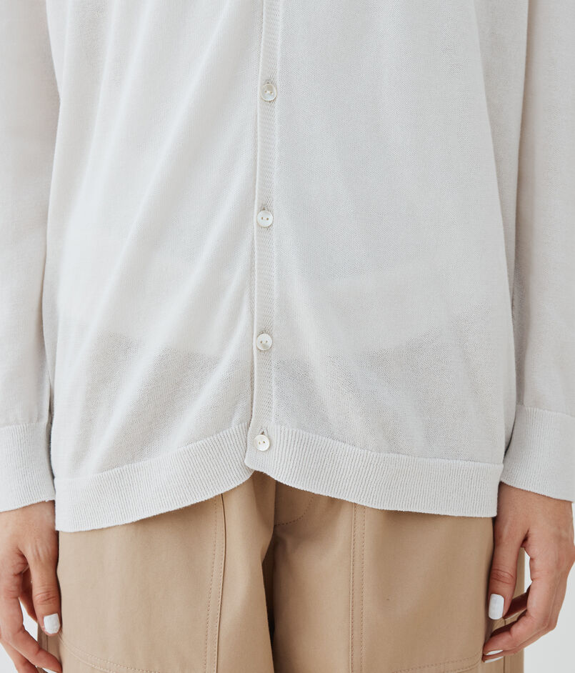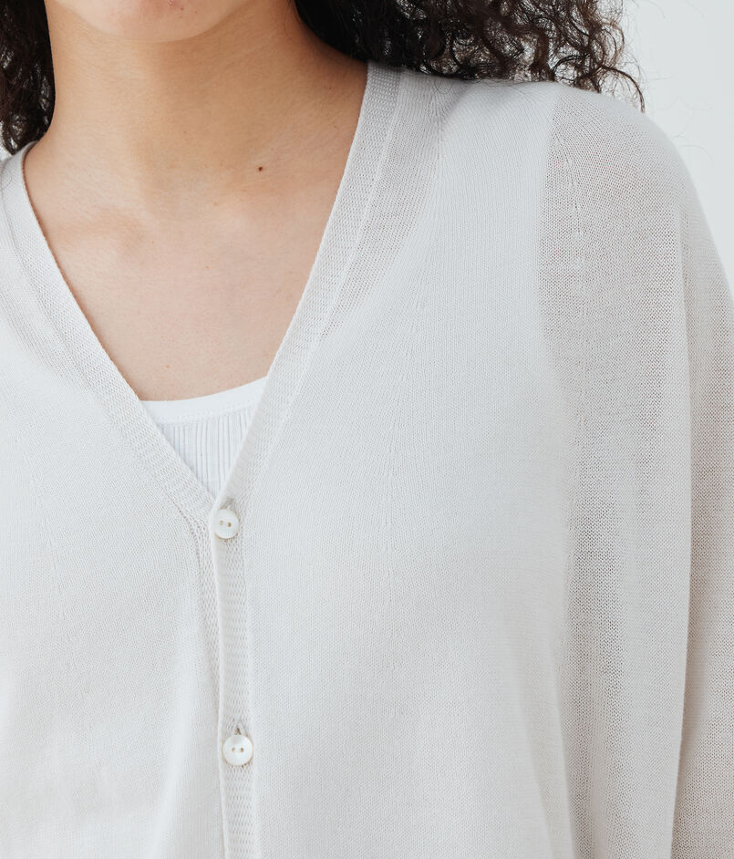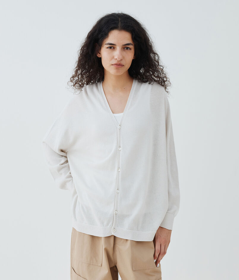 求心編みにしたカーディガンはニットならではのフォルムが魅力的な一枚。