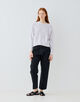 ハイウエストパンツやロングスカートなどボリュームのあるボトムスとも相性抜群。