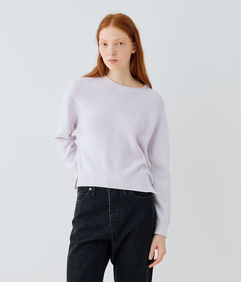 良質なコットンとカシミヤを混紡した糸で編み上げたプルオーバー。