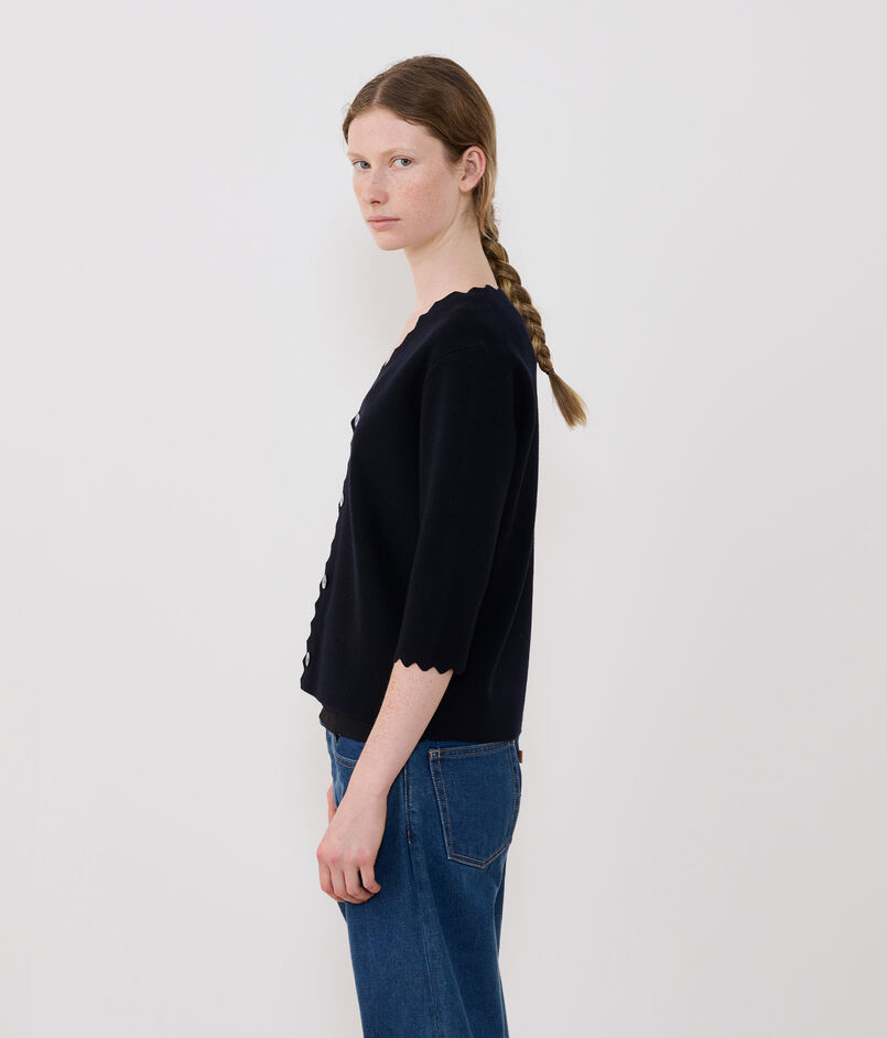 ハイゲージニットならではのさらりとしたタッチとほど良いハリ感があり、まだ暑さの残る時期にも心地良く着用いただけます。