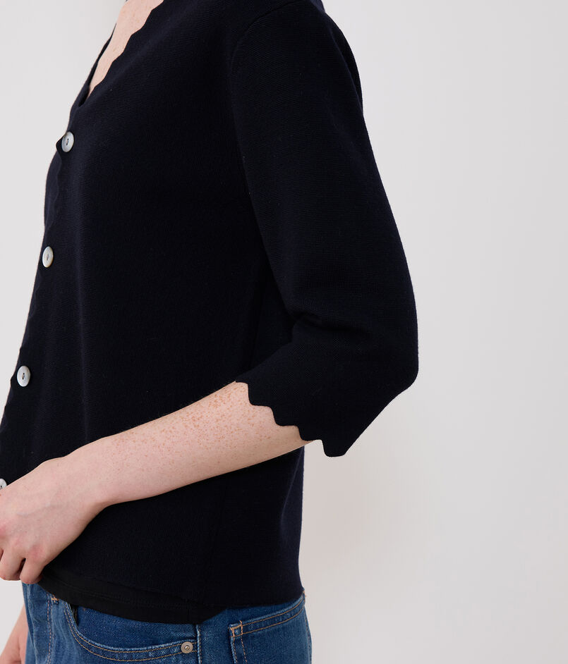 肘までの六分袖は気候が不安定な時期にも取り入れやすく、ブリッジシーズンのプラスワンアイテムとして活躍。