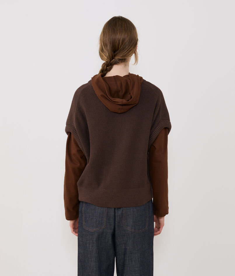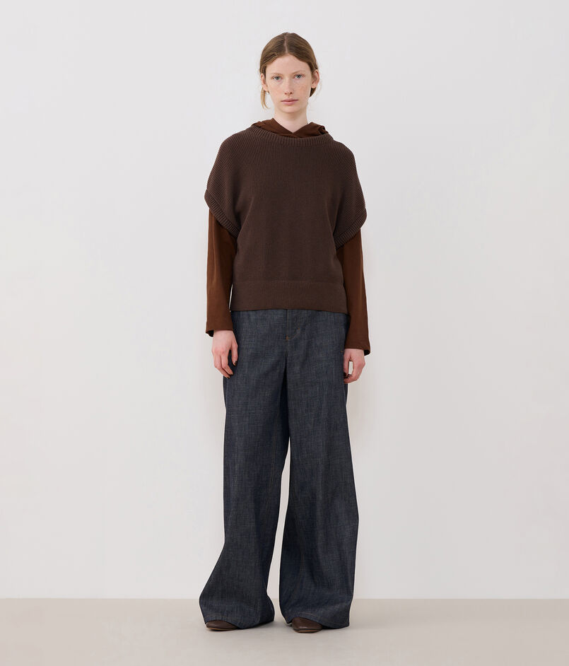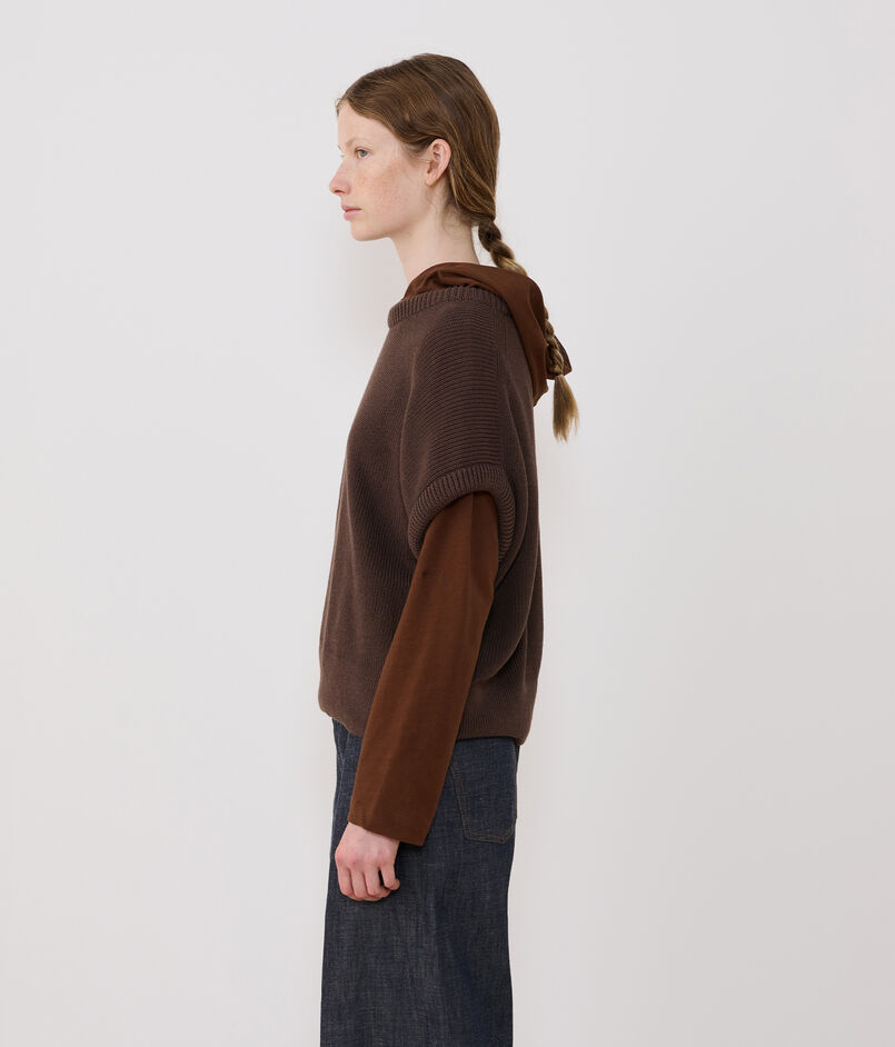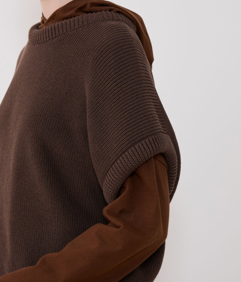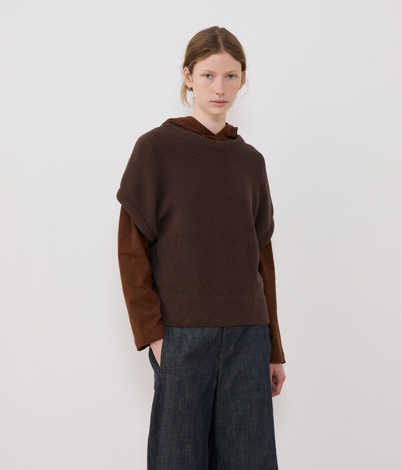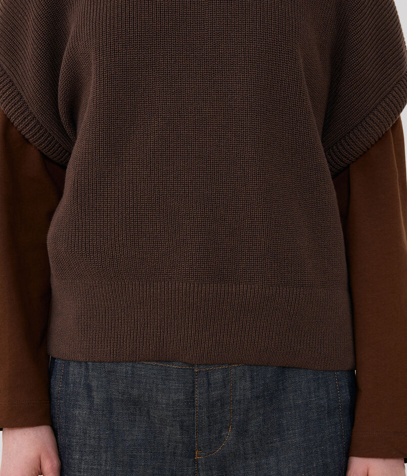 一枚ではもちろん、ベスト感覚でカットソーやシャツなどとレイヤードするのもおすすめ。