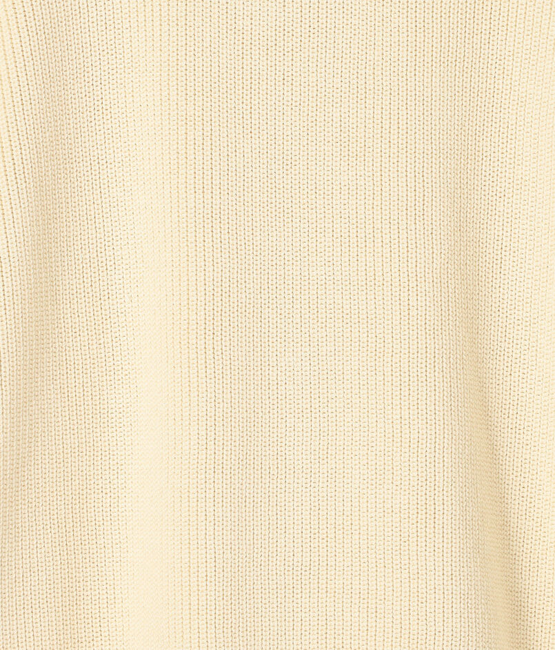 コンパクトスビン紡績で毛羽立ちを抑えたコットン糸に強撚加工を施し、きれいに目の立ったミドルゲージの畦編み組織に編み立てたニットシリーズ。