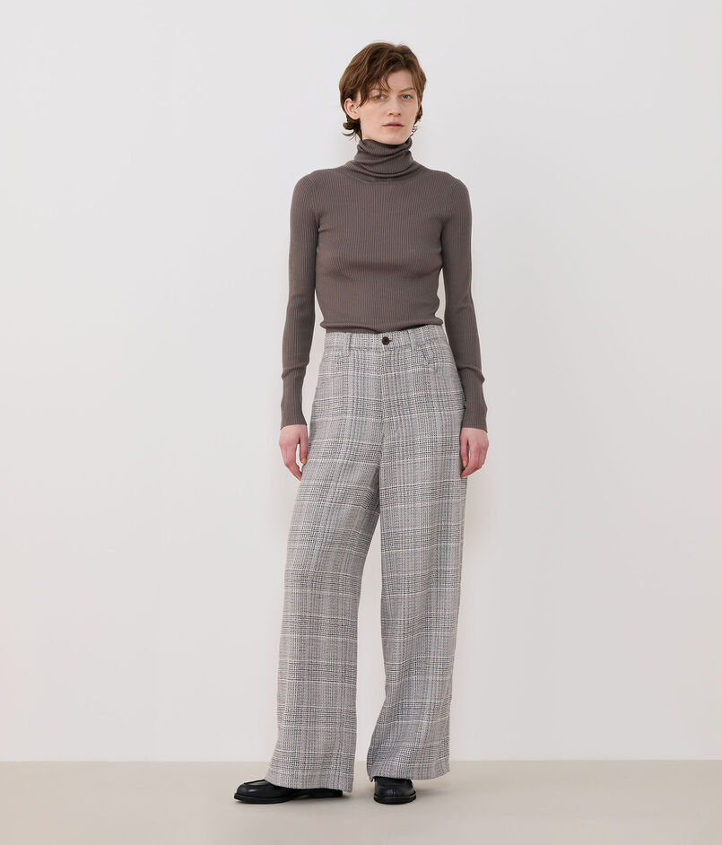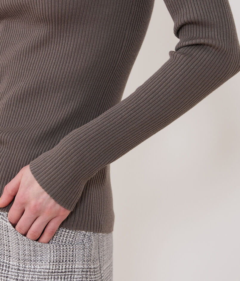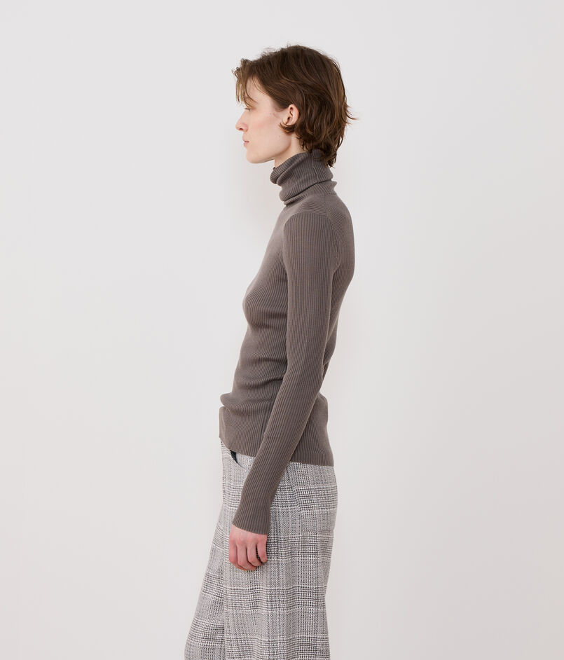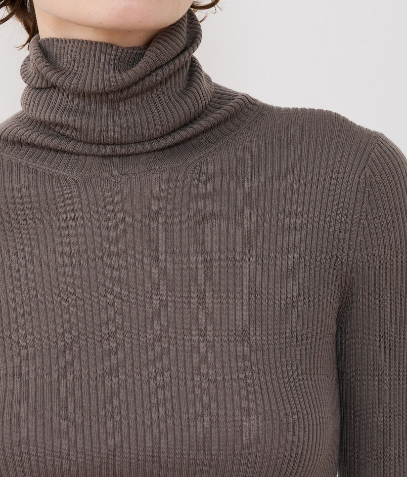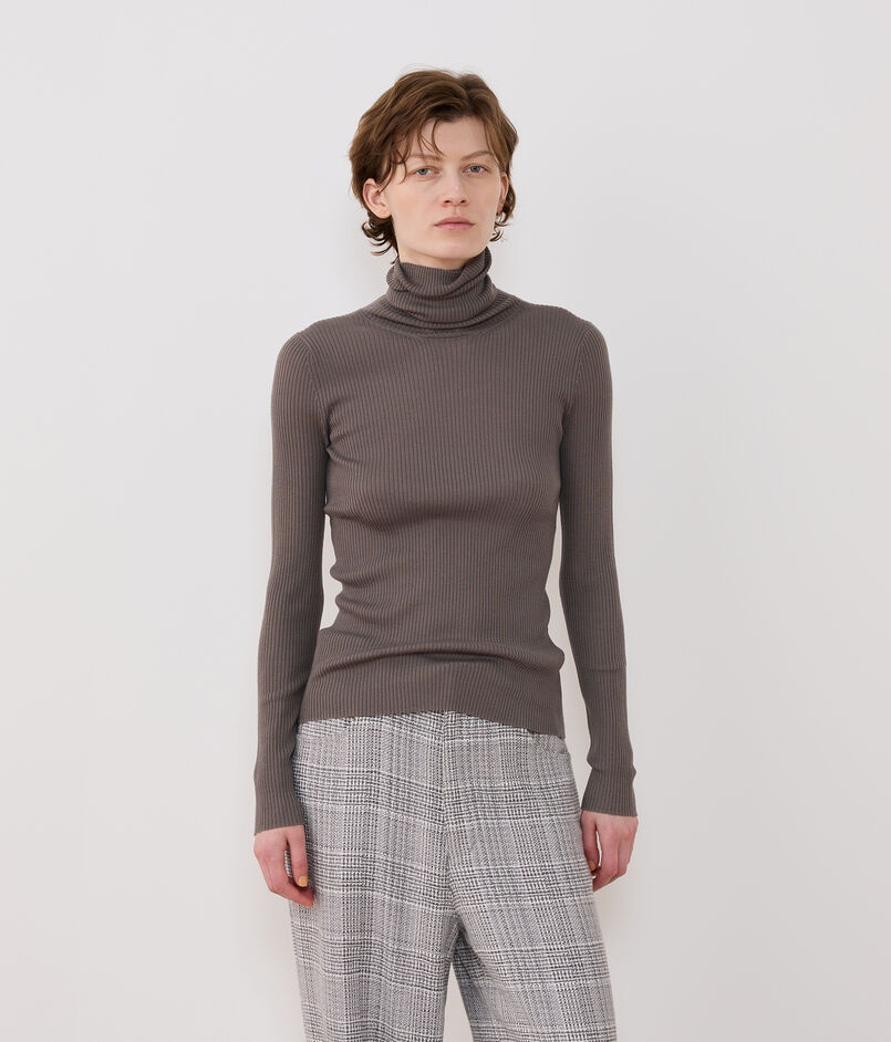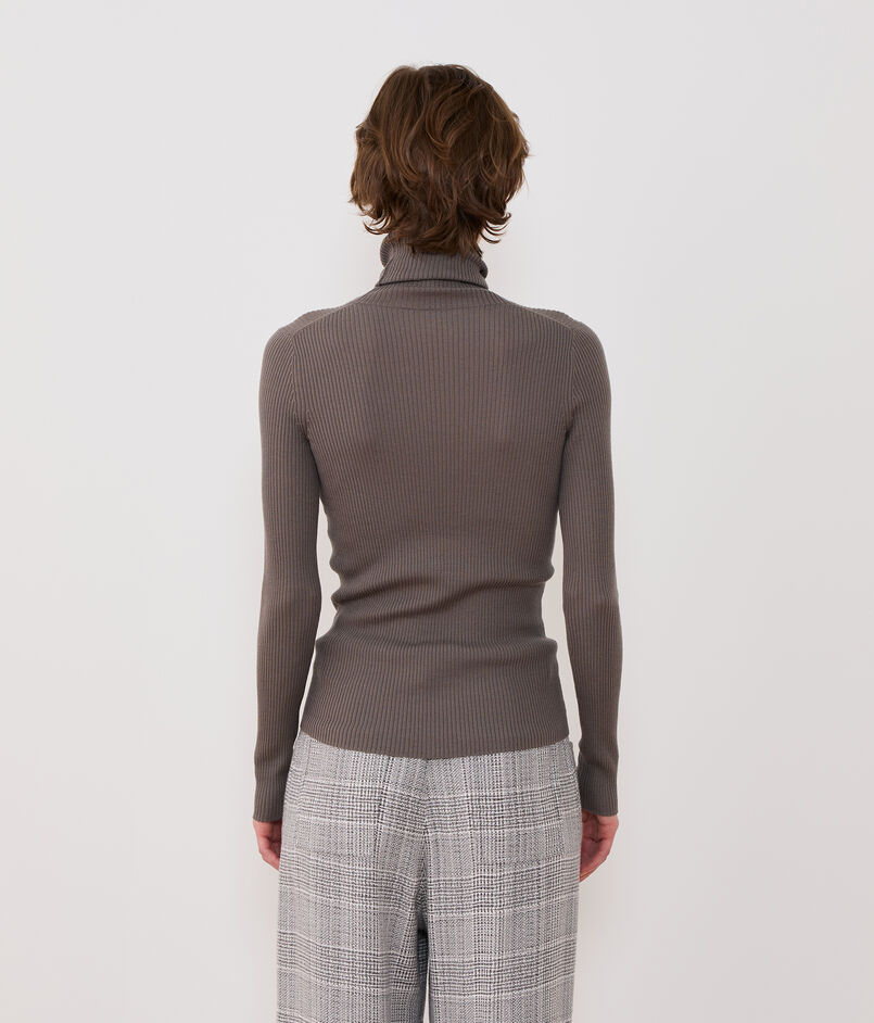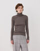 折り返してもしっかりと高さのある襟と、やや長めのスリーブがポイントのタートルネックプルオーバー。