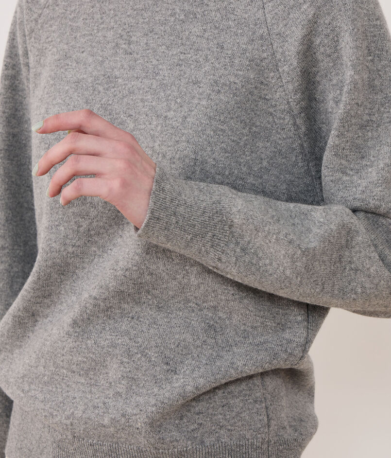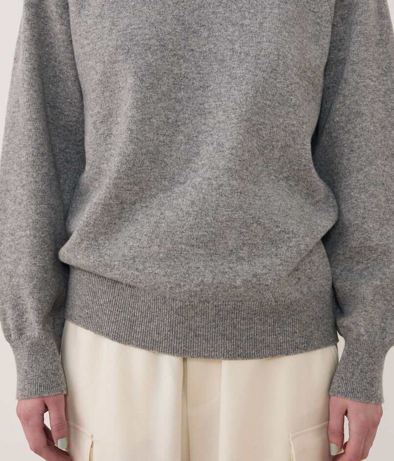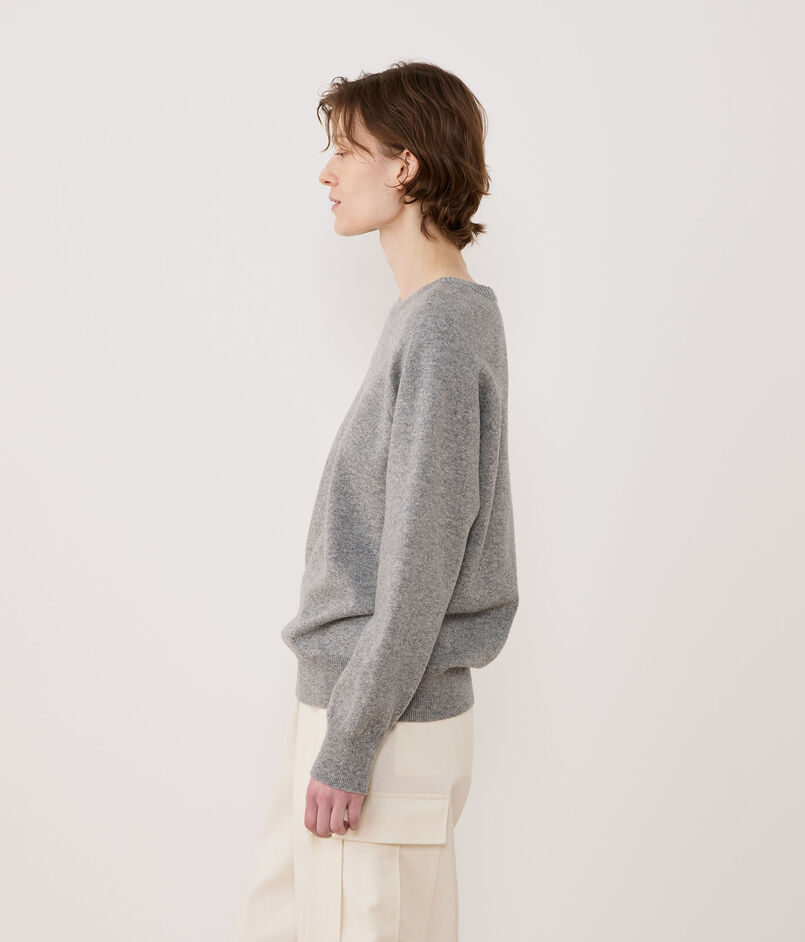 袖口と裾はリブ編みで仕上げているため着用すると自然な丸みが生まれ、スエットのようなフォルムに。