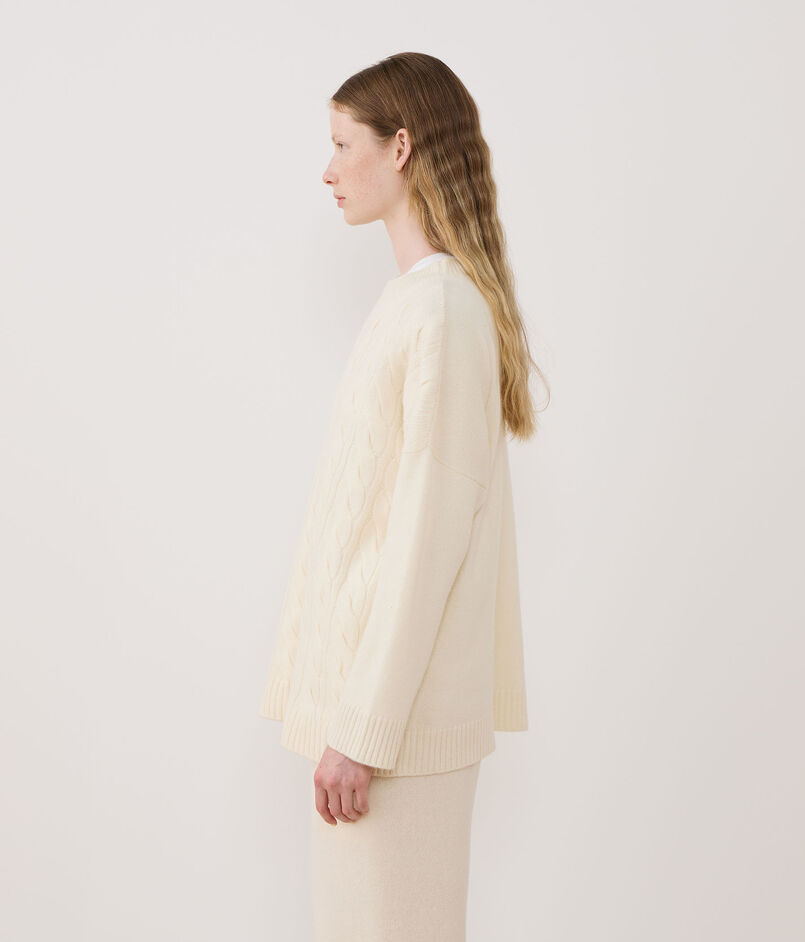 モンゴルカシミヤケーブル クルーネックプルオーバー