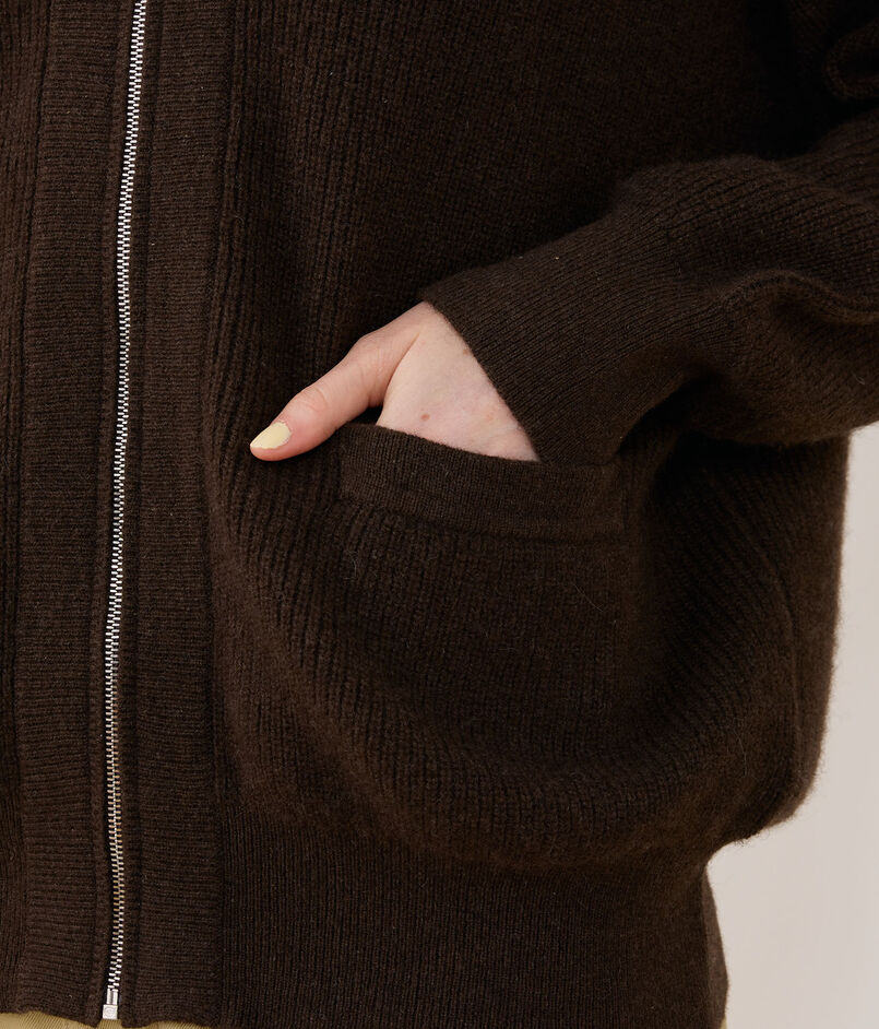 ジップアップのデザインがスポーティーな印象で、スタイリングにライトな雰囲気を演出。