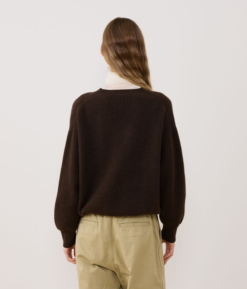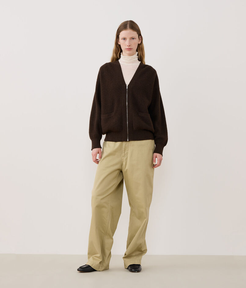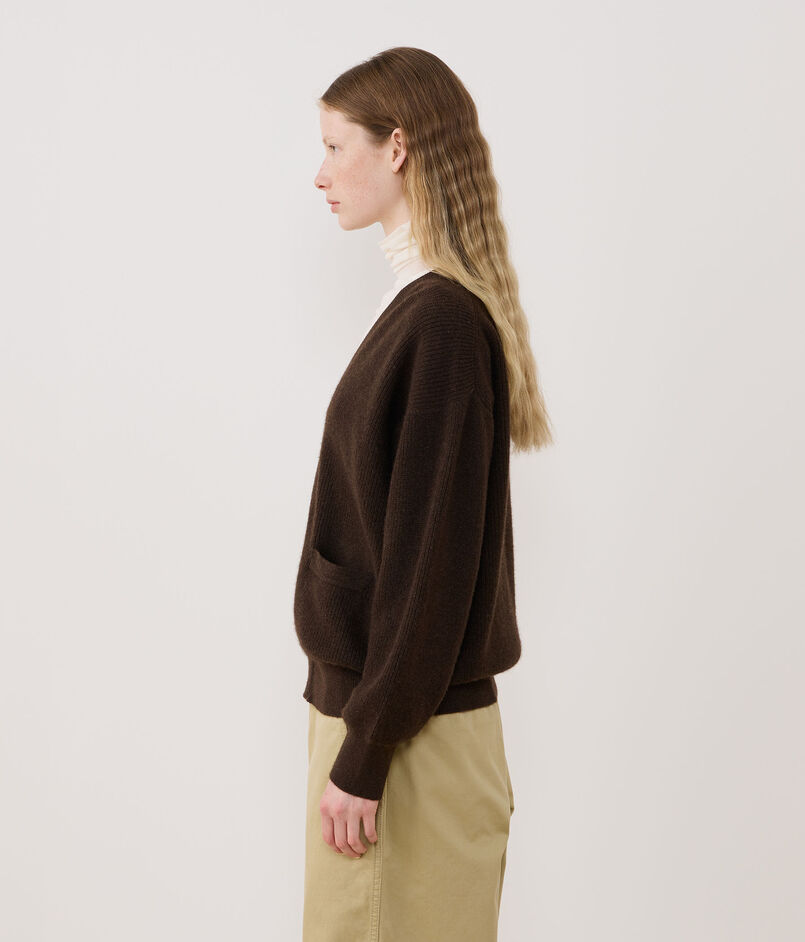 モンゴルの厳しい環境下で育った、通気性と保温性を兼ね備えたヤクウール素材のカーディガン。