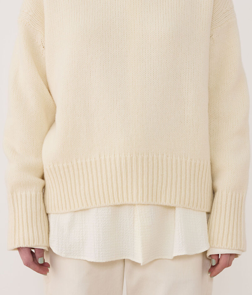 オーストラリア産の原料を多本取りにし、ローゲージで編み立てた〈GALERIE VIE〉定番のニットシリーズ。
