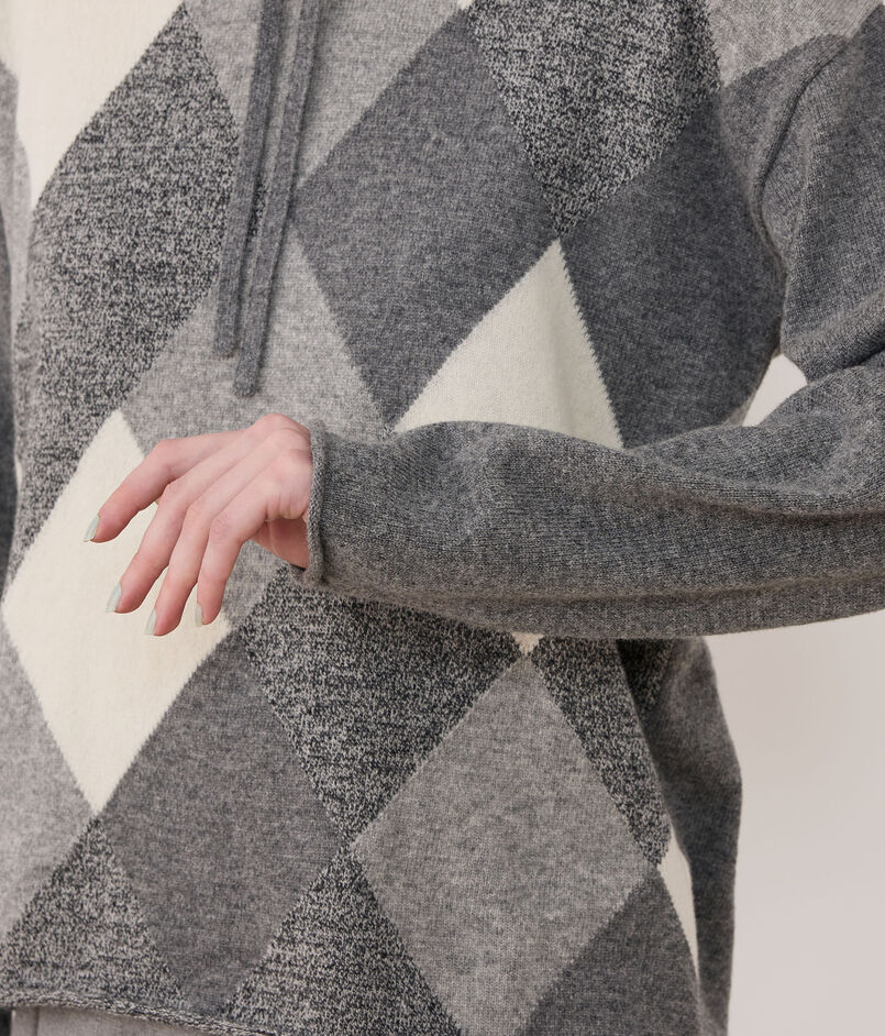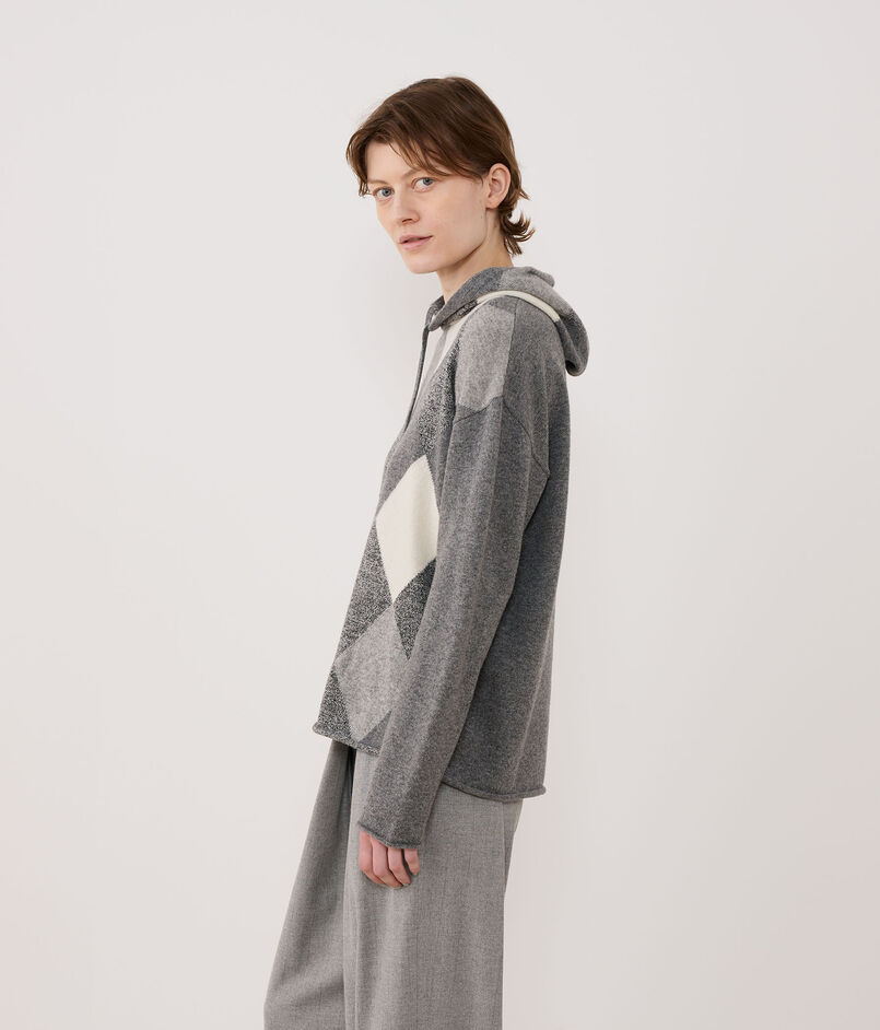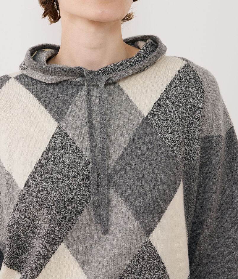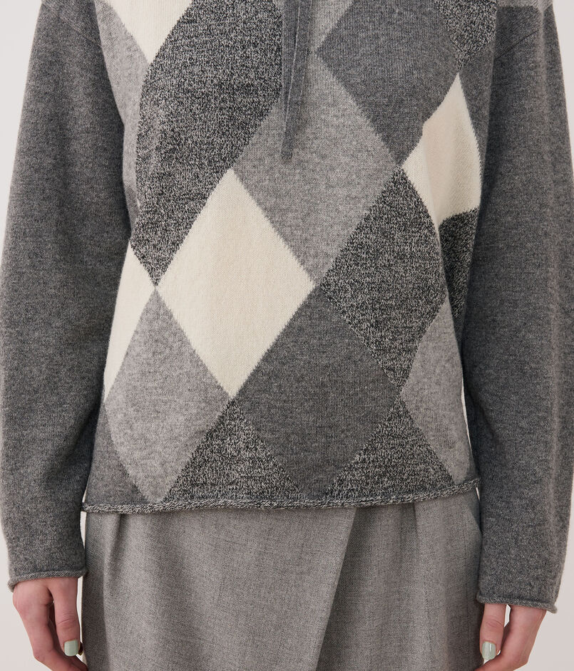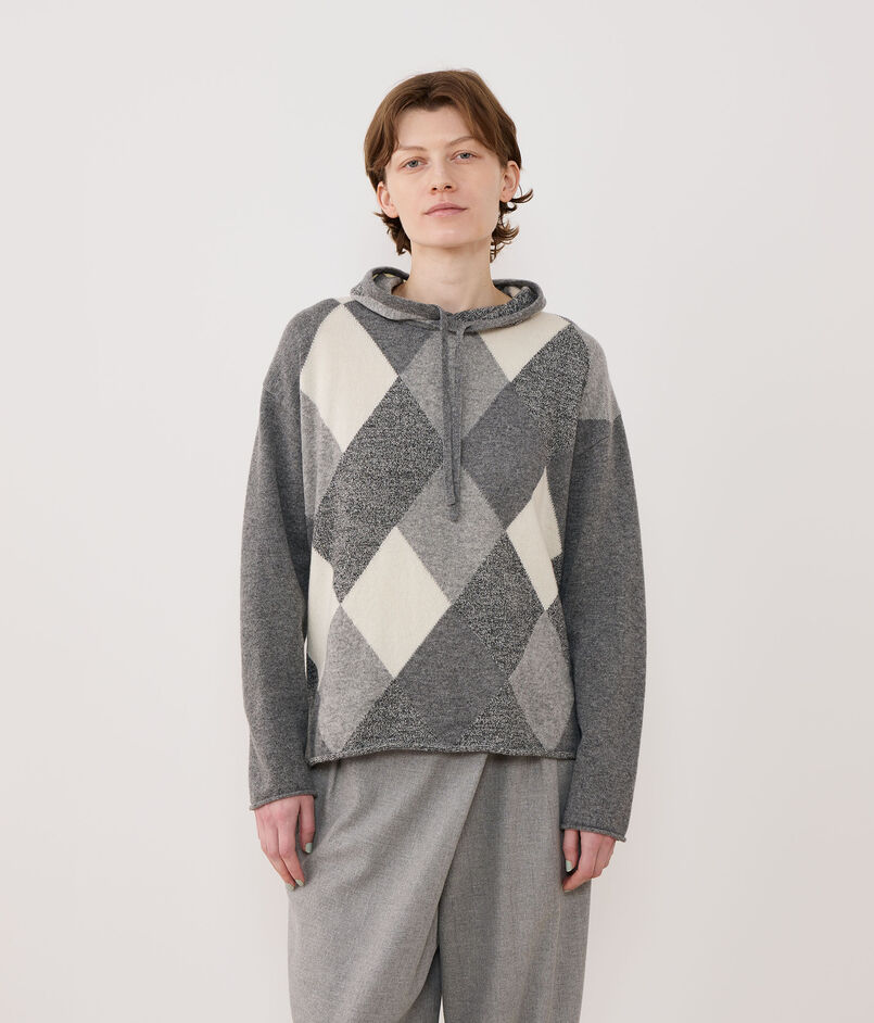 モノトーンのアーガイル柄がどこか懐かしい印象のプルオーバー。