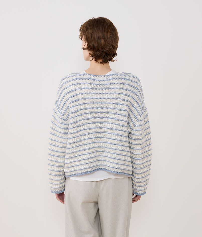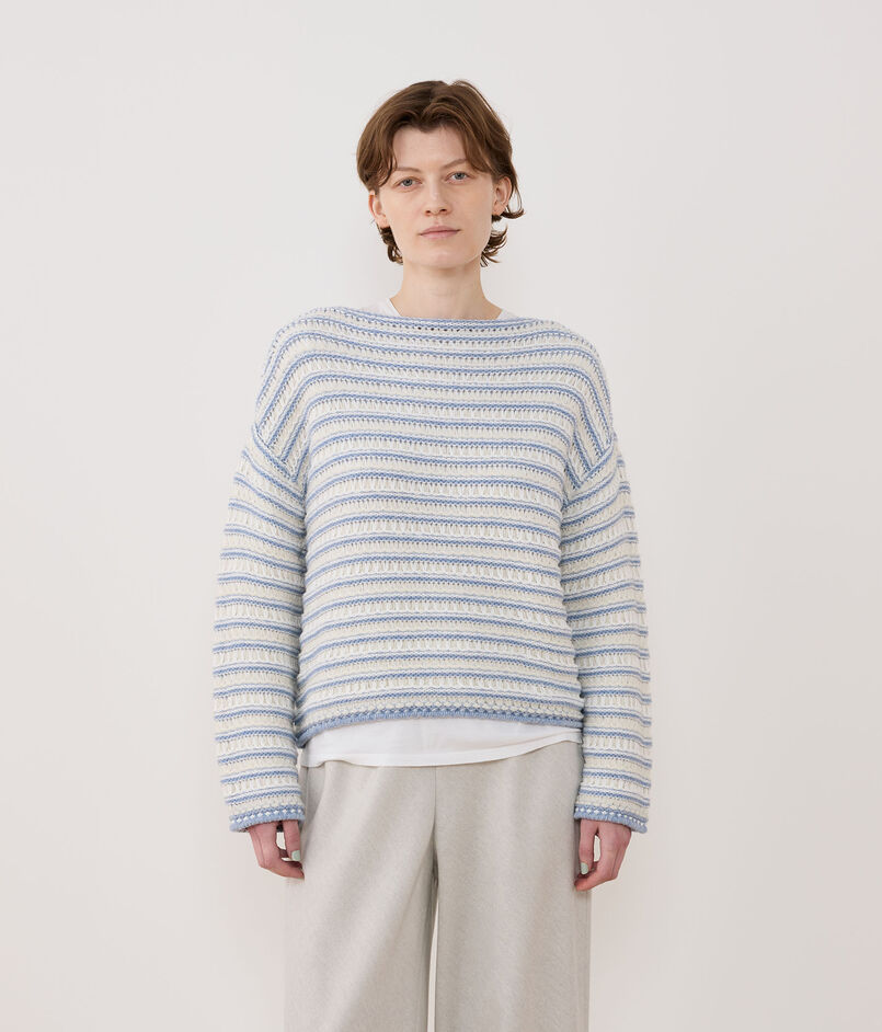 抜け感のある軽い色合いのボーダーがヘルシーな印象のプルオーバー。
