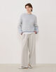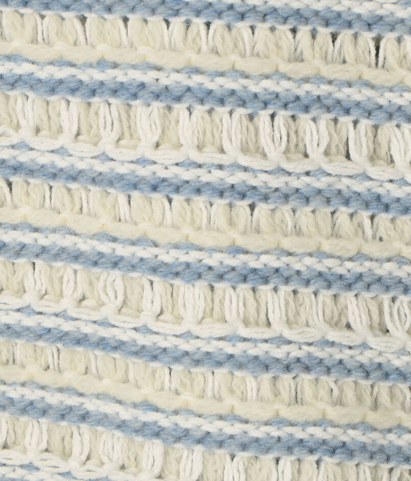 柔らかな風合いの良質な紡毛ウールをメインに使用しつつ、クリアなホワイトカラーを際立たせるためその部分のみコットン混の別糸を使用しているのもこだわりのポイントです。