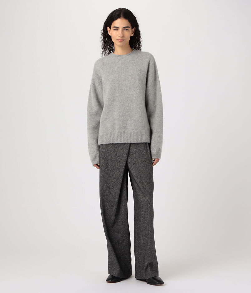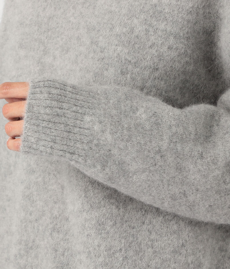 メンズのニットを着ているようなサイズ感をイメージし、袖丈もやや長めに仕立てました。