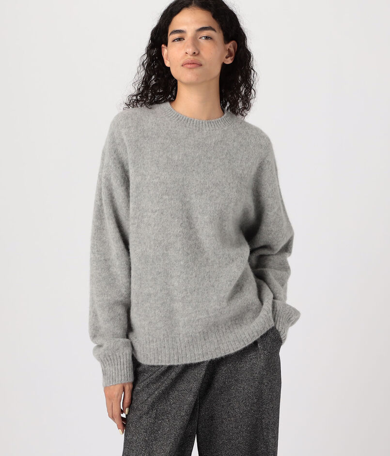 クルーネックプルオーバーはボディ・スリーブともにゆったりとしたシルエットにヒップまで隠れる丈感でリラックスムード漂う一着です。