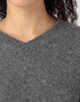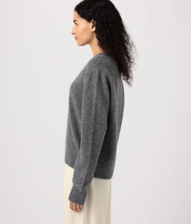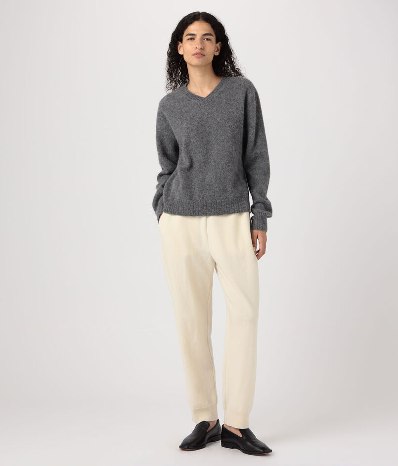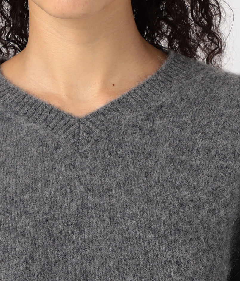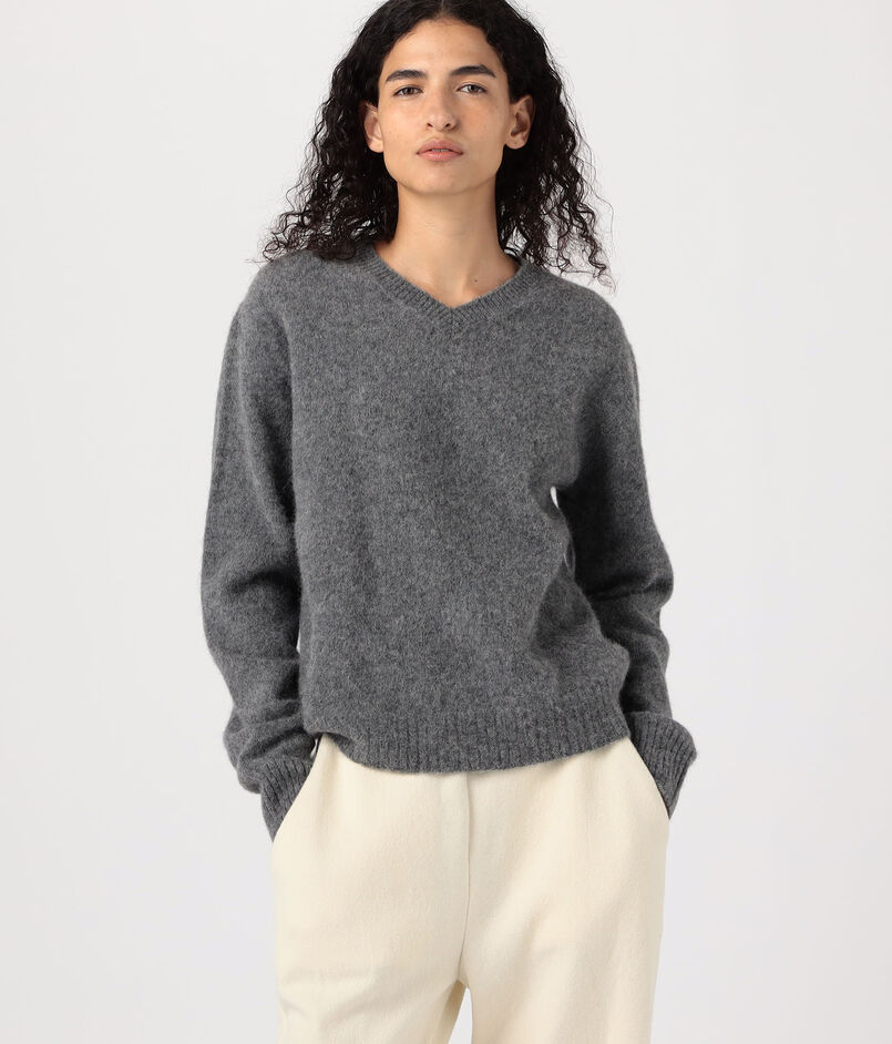 Vネックプルオーバーはコンパクトなサイズ感で、タックパンツやロングスカートなどのボリュームのあるボトムスともバランス良く合わせていただけます。