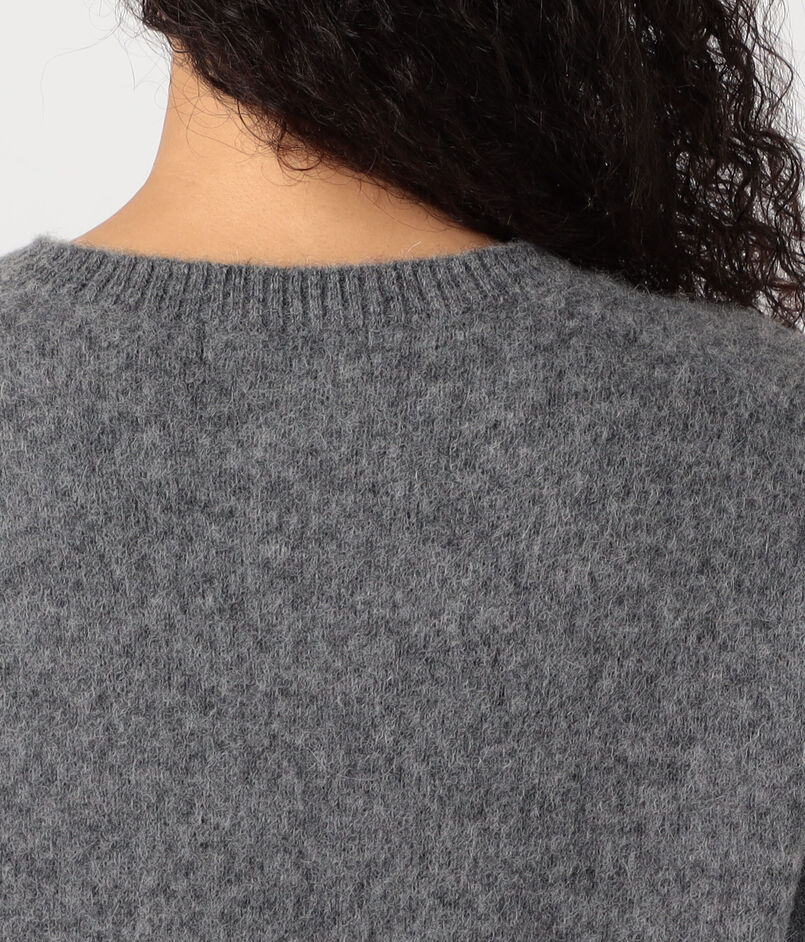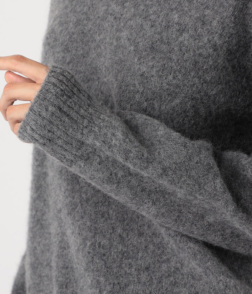 南米・アンデス産の原料を紡毛引きにして編み上げ、日本の工場で強縮加工を施しています。