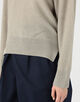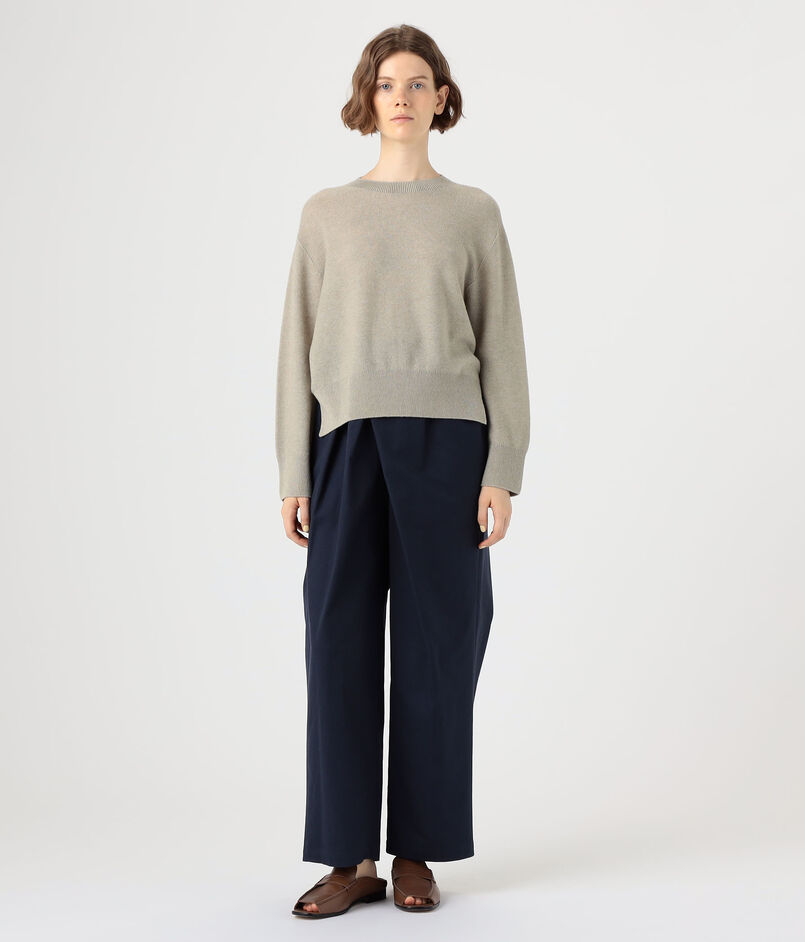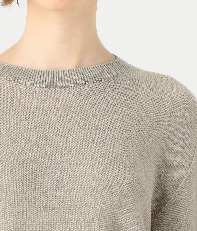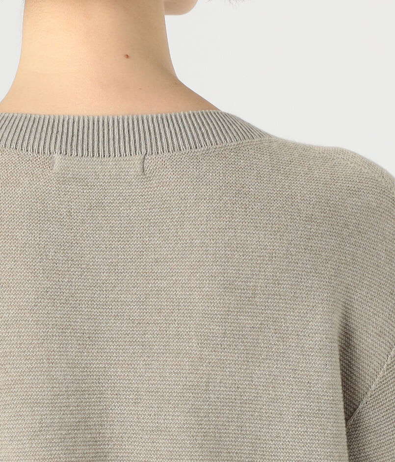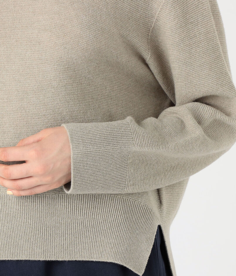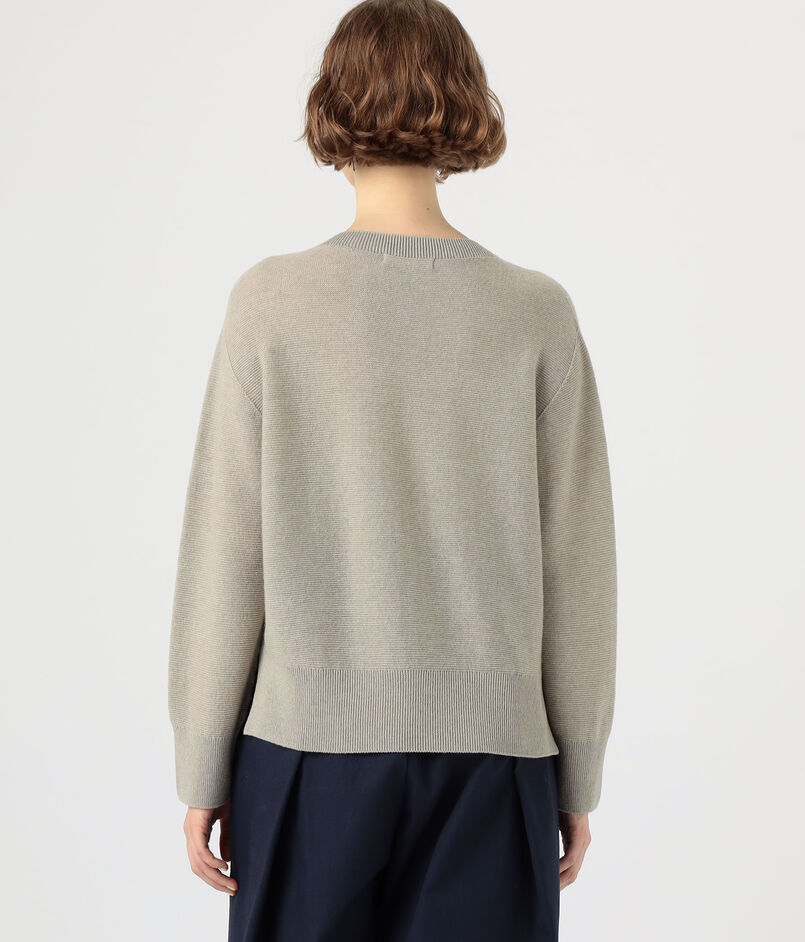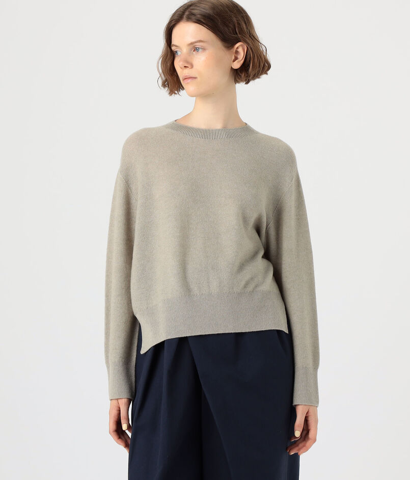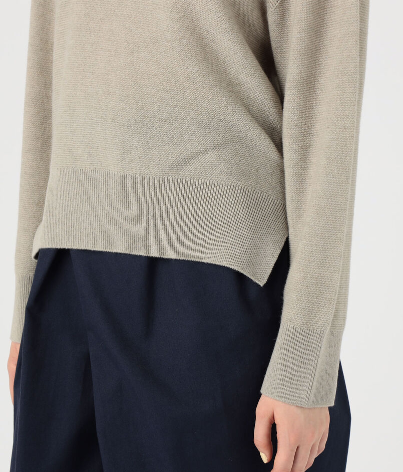 紡毛カシミヤにコットンを撚糸したスコットランド産の糸をガーター編みで編み立てたニットプルオーバー。