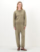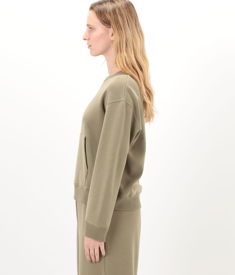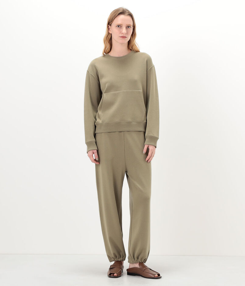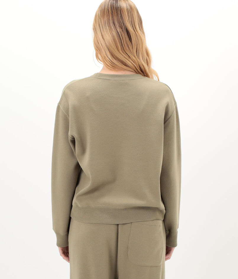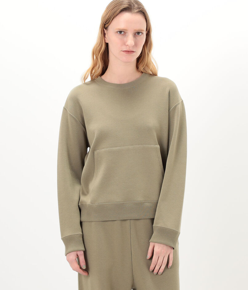 袖口と裾はリブ編みで仕上げているため着用すると自然な丸みが生まれ、スエットのようなフォルムで着用いただけます。