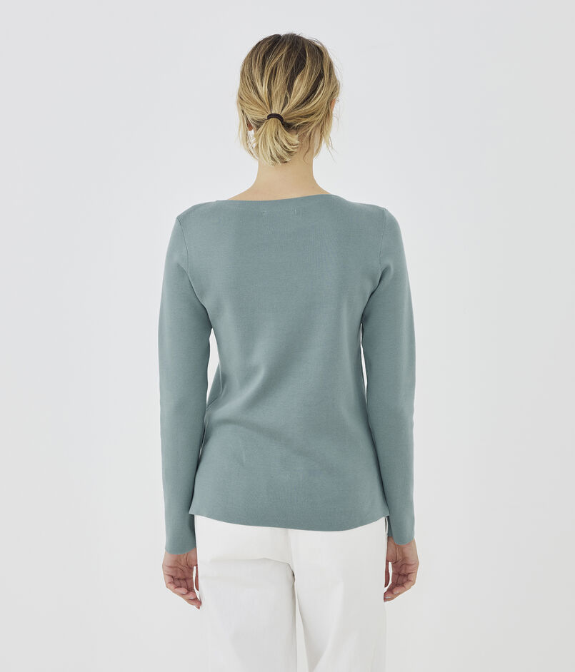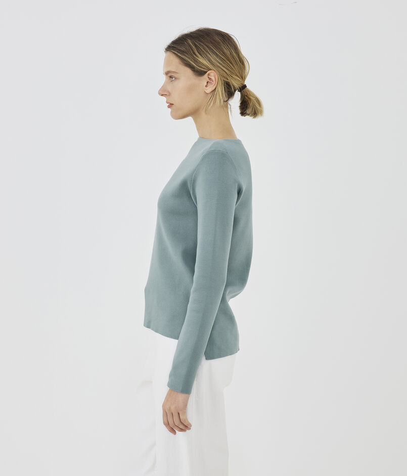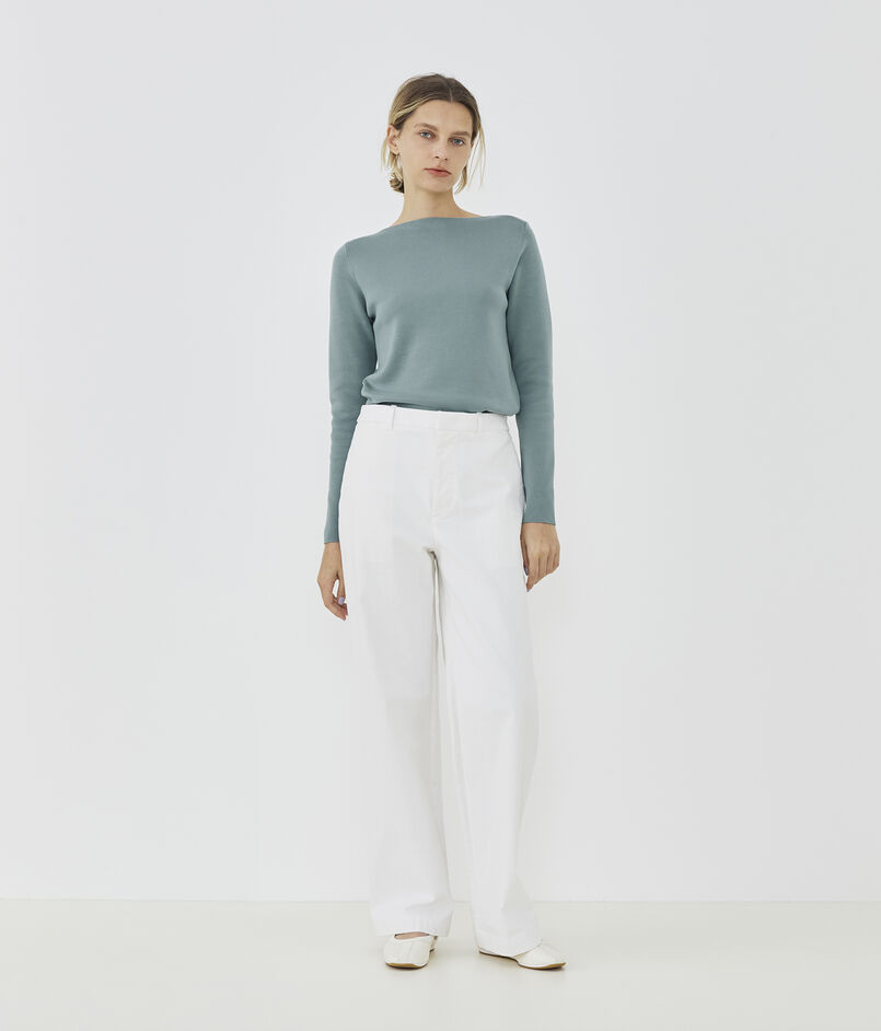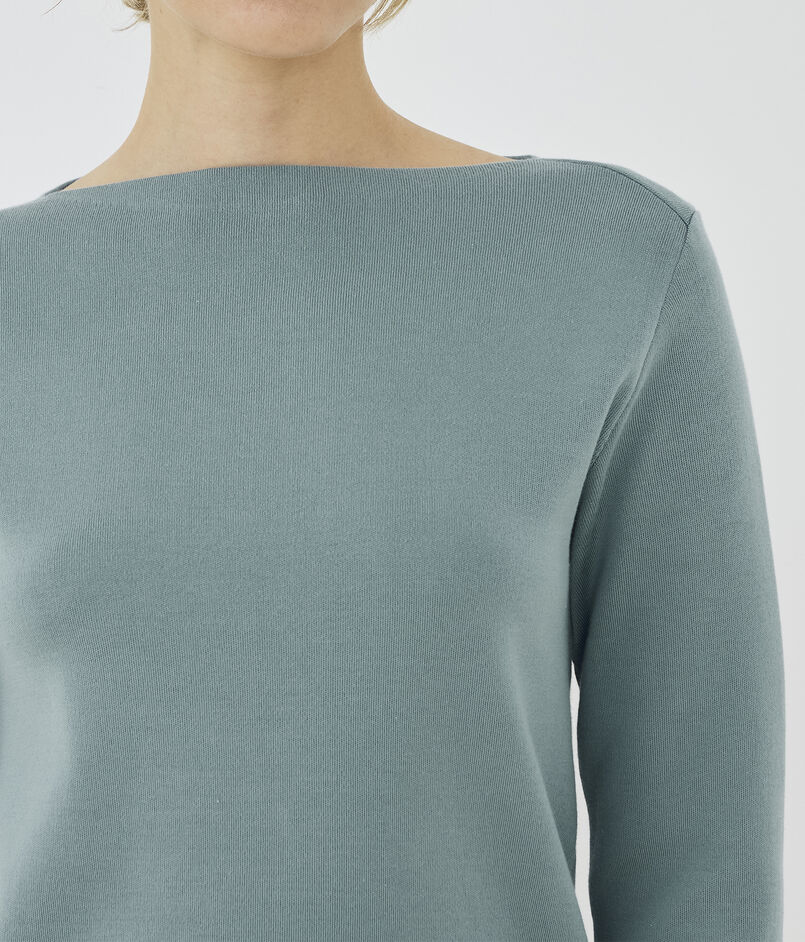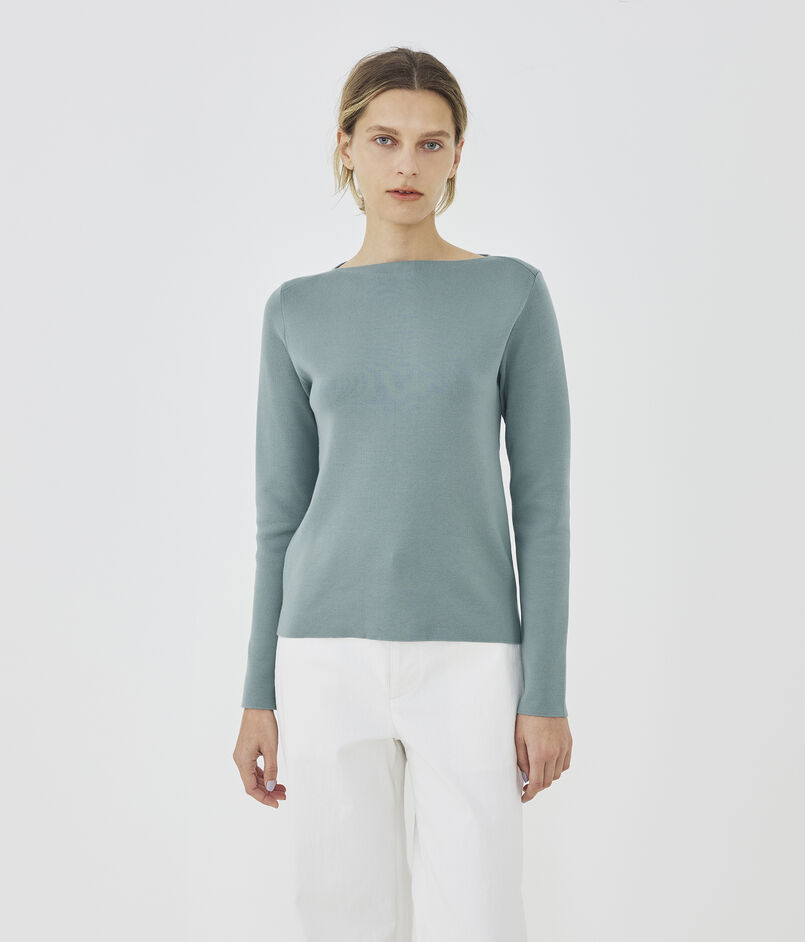 ミニマルですっきりとしたデザインのボートネックプルオーバー。