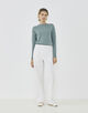 さりげなくボディラインに沿うシルエットがヘルシーな雰囲気で、一枚ではもちろんレイヤードスタイルのインナーとしても活躍してくれます。