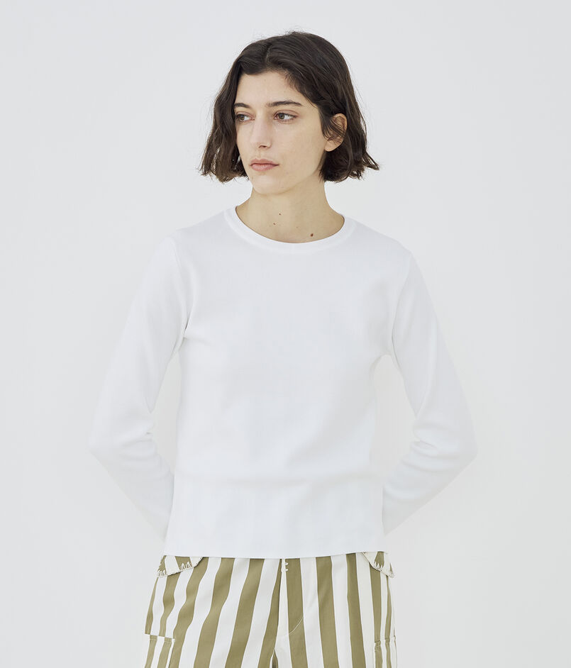 フィットし過ぎない絶妙なシルエットで、一枚ではもちろんレイヤードスタイルのインナーとしても活躍してくれます。