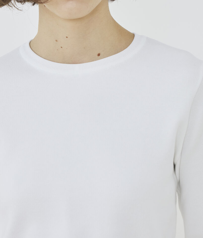 クルーネックプルオーバーはコンパクトなネックラインがクリーンな印象の一着。