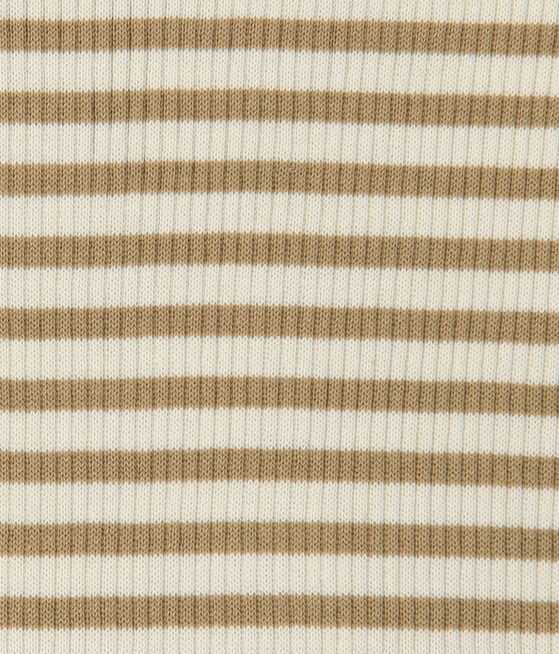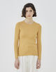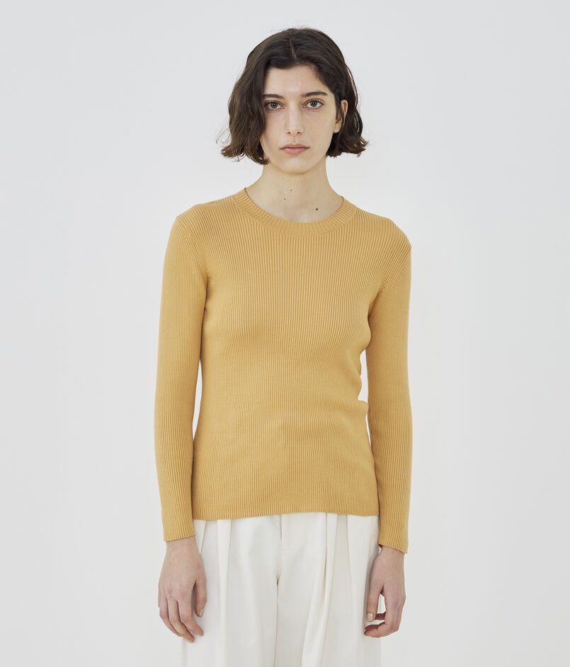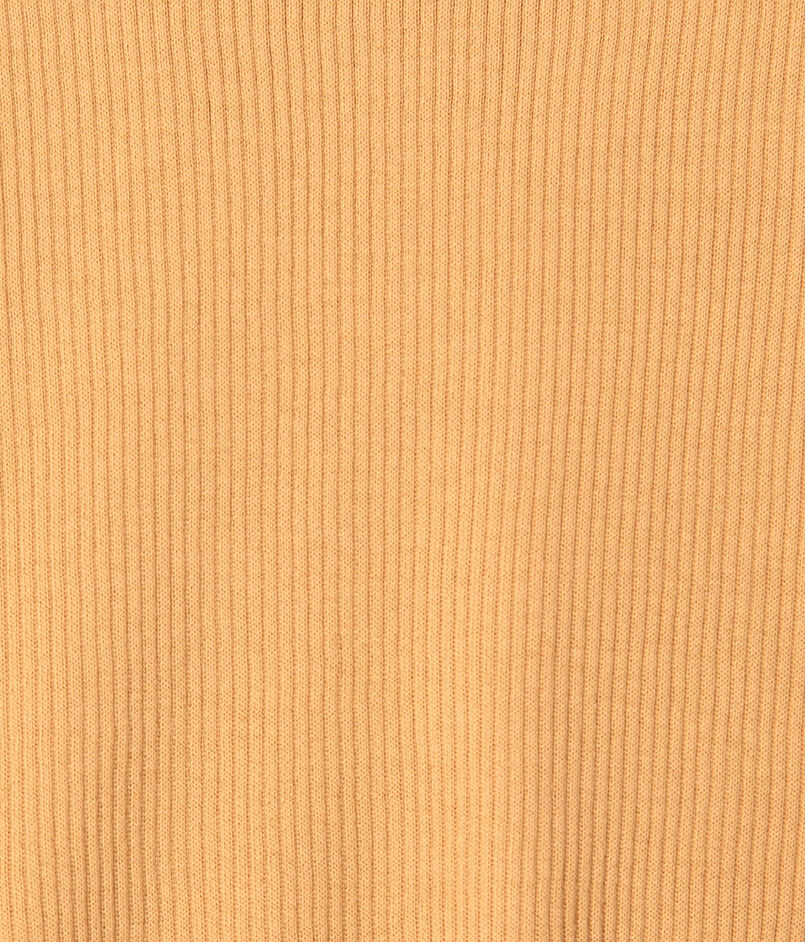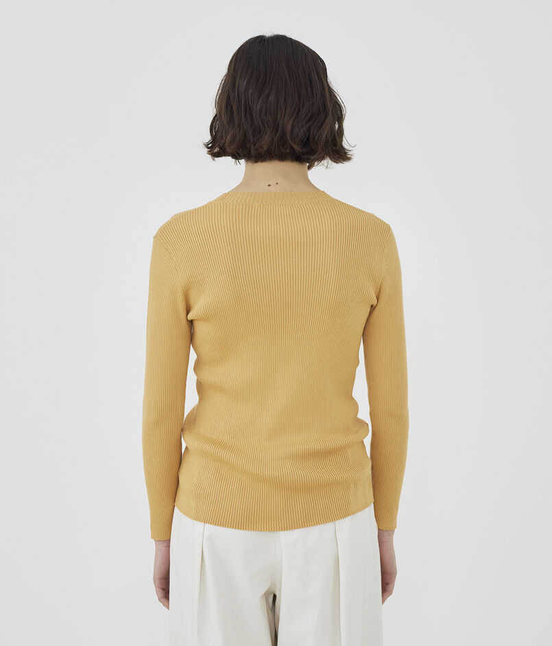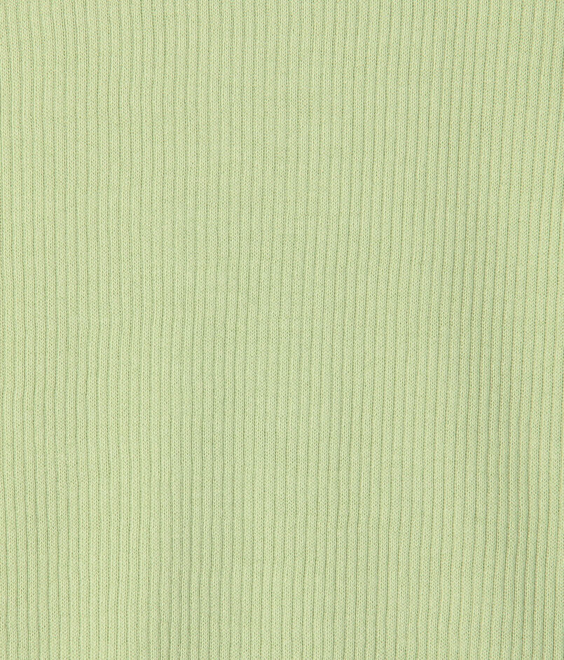 リブ特有の締め付けを感じさせない着心地を追求しつつ、すっきりとしたコンパクトなシルエットを両立させています。