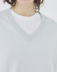 深すぎない絶妙なVあきで、一枚で着用するのはもちろんTシャツとレイヤードするのもおすすめです。