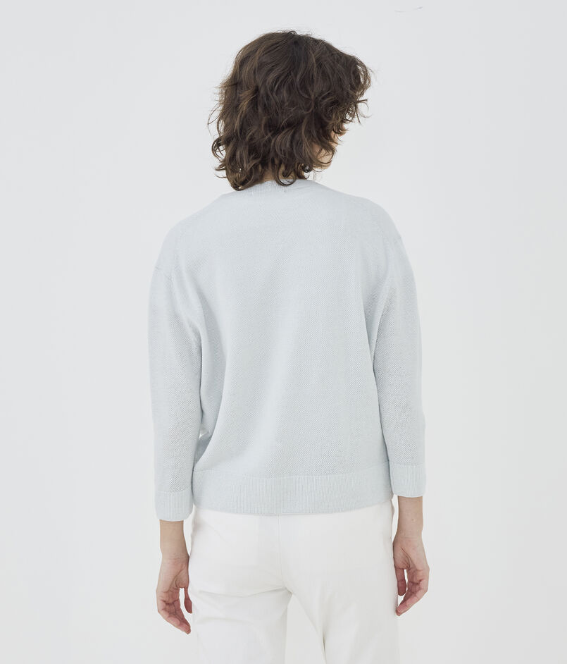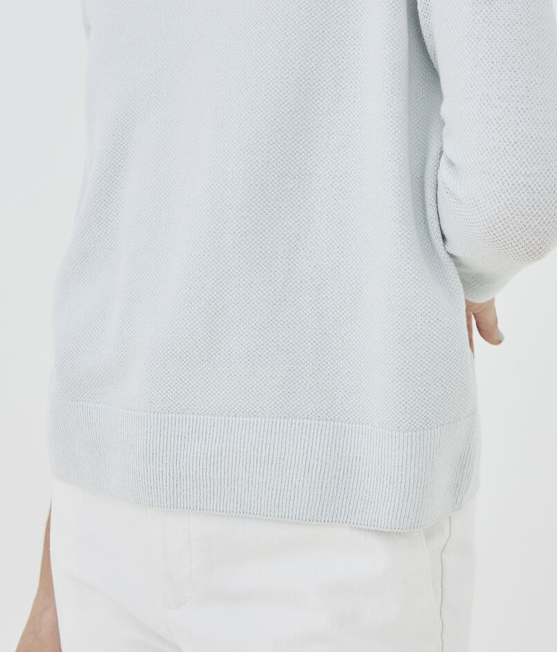 鹿の子編みならではの凹凸があるため肌に張り付かず、通気性に優れているので気温が高くなる時期にも快適に着用いただけます。