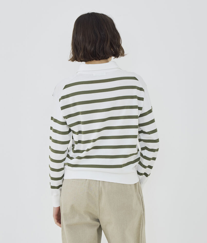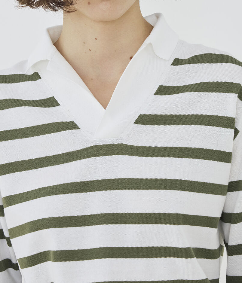 今季新型のオープンカラープルオーバーは鎖骨が美しく見えるよう、首元の開きをやや横に広く仕上げました。