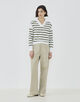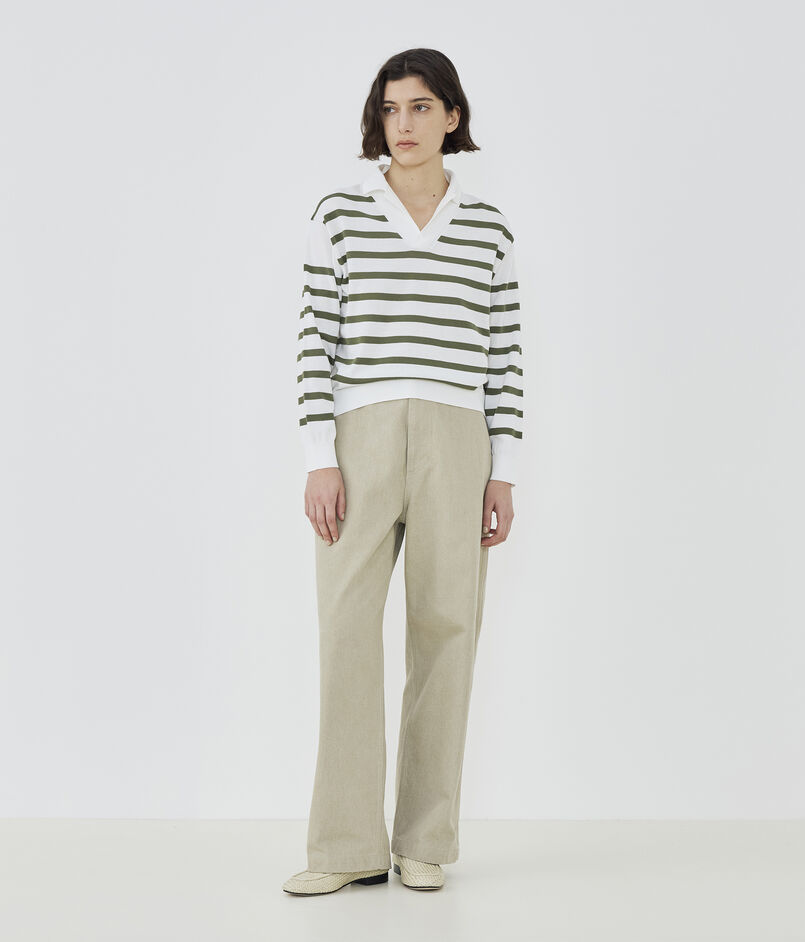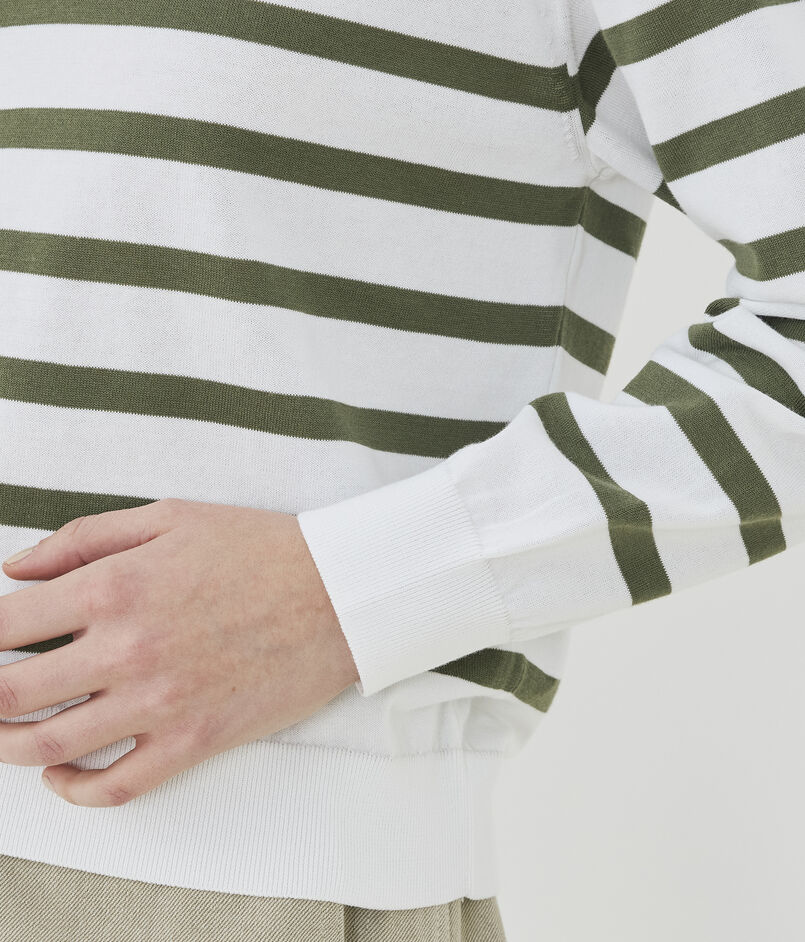 今季新型のオープンカラープルオーバーは鎖骨が美しく見えるよう、首元の開きをやや横に広く仕上げました。