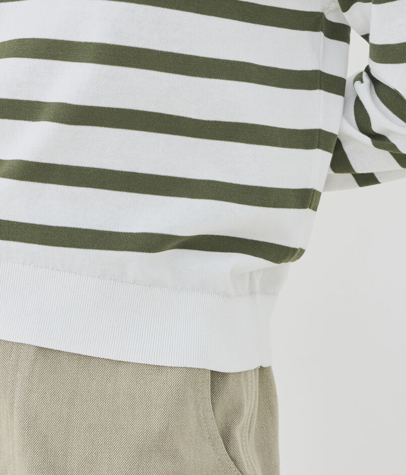 身頃や袖にはほど良いゆとりがありながら全体的にはコンパクトなサイズ感で、パンツからスカートまでさまざまなボトムスと合わせやすいのも魅力。
