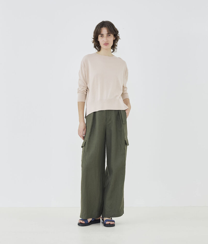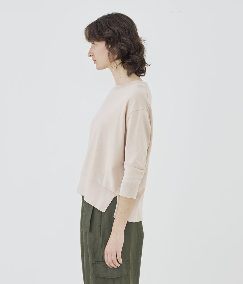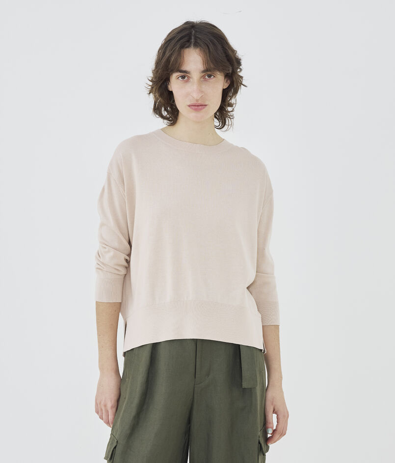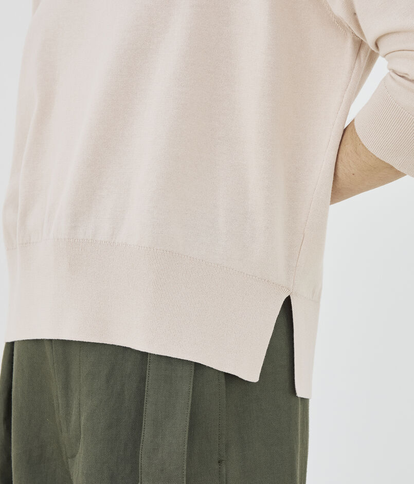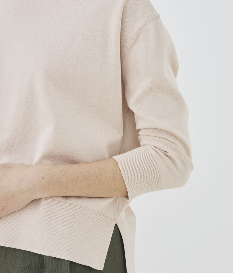 クルーネックプルオーバーは詰まったネックラインに適度にゆとりのあるシルエットがクリーンかつリラックスした印象の一着。