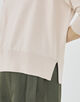 両サイドにスリットを入れることで裾のリブが自然にウエストに沿い、ボリュームのあるボトムスともバランス良く合わせていただけます。