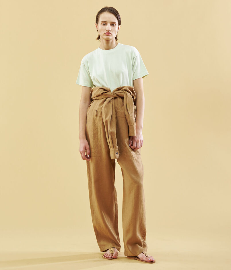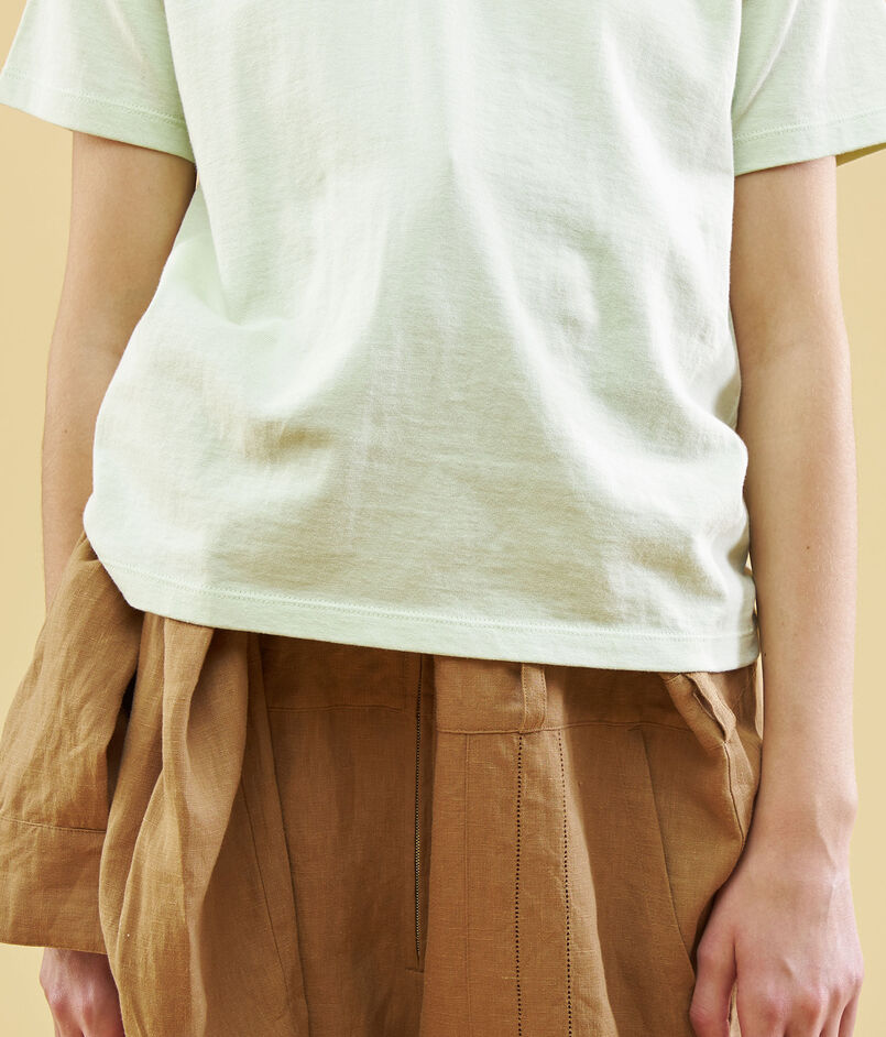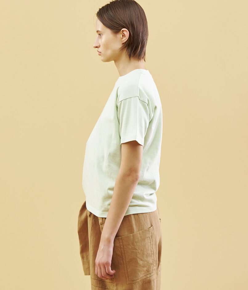 ショートスリーブプルオーバーはウエストシェイプのないボクシーなシルエットでヘルシーな女性らしい印象の一着。