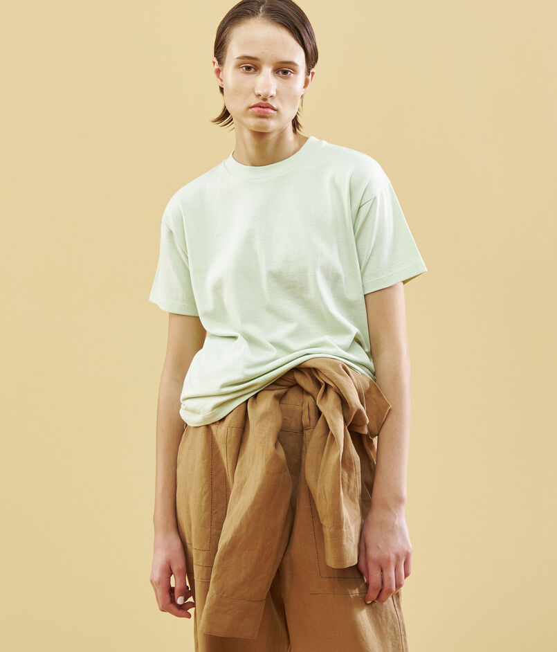 1時間に1メートルしか編むことのできない希少なコットンジャージー素材を使用したカットソーシリーズ。