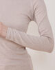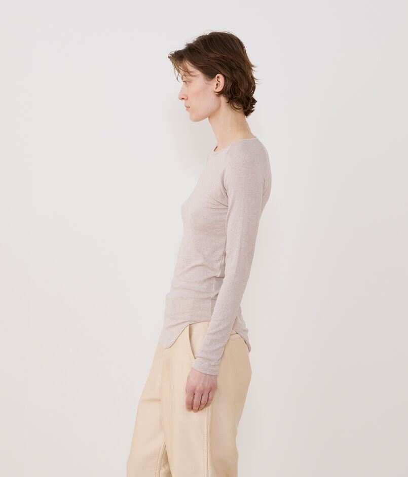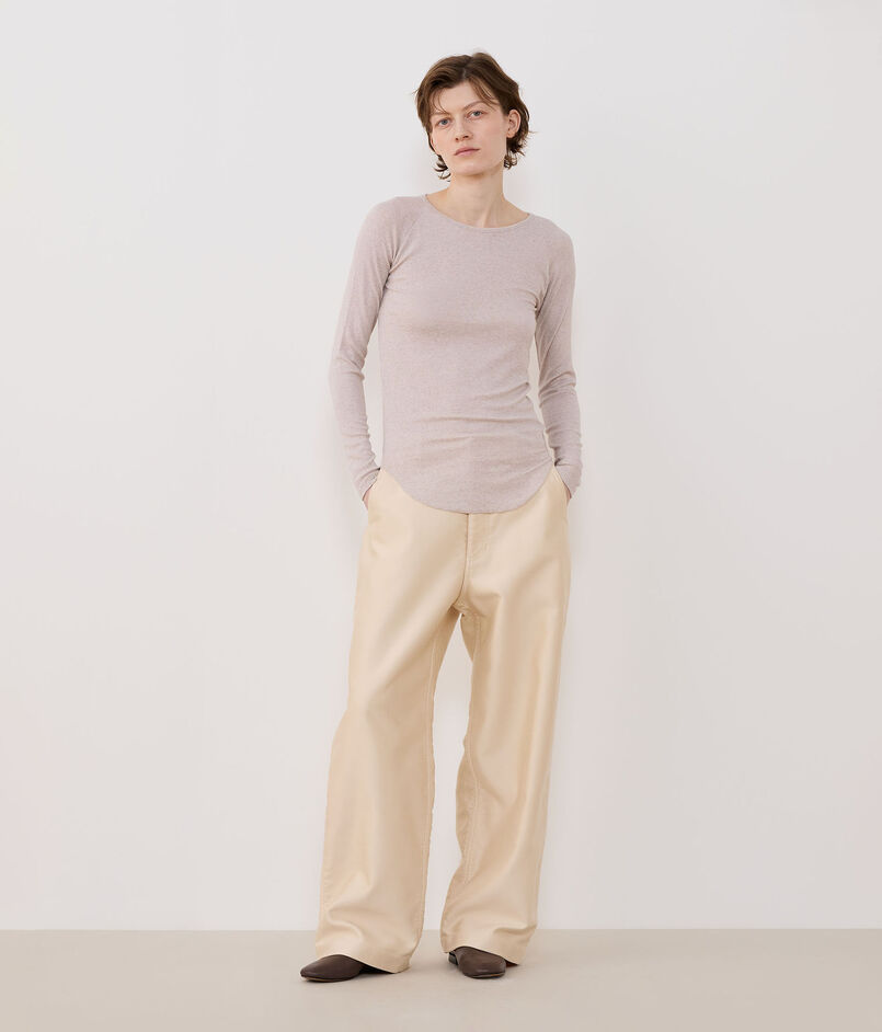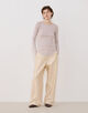 クルーネックプルオーバーはやや横に広いネックラインとフィット感のあるすっきりとしたシルエットでクリーンかつ女性らしい印象の一着。