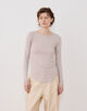 クルーネックプルオーバーはやや横に広いネックラインとフィット感のあるすっきりとしたシルエットでクリーンかつ女性らしい印象の一着。