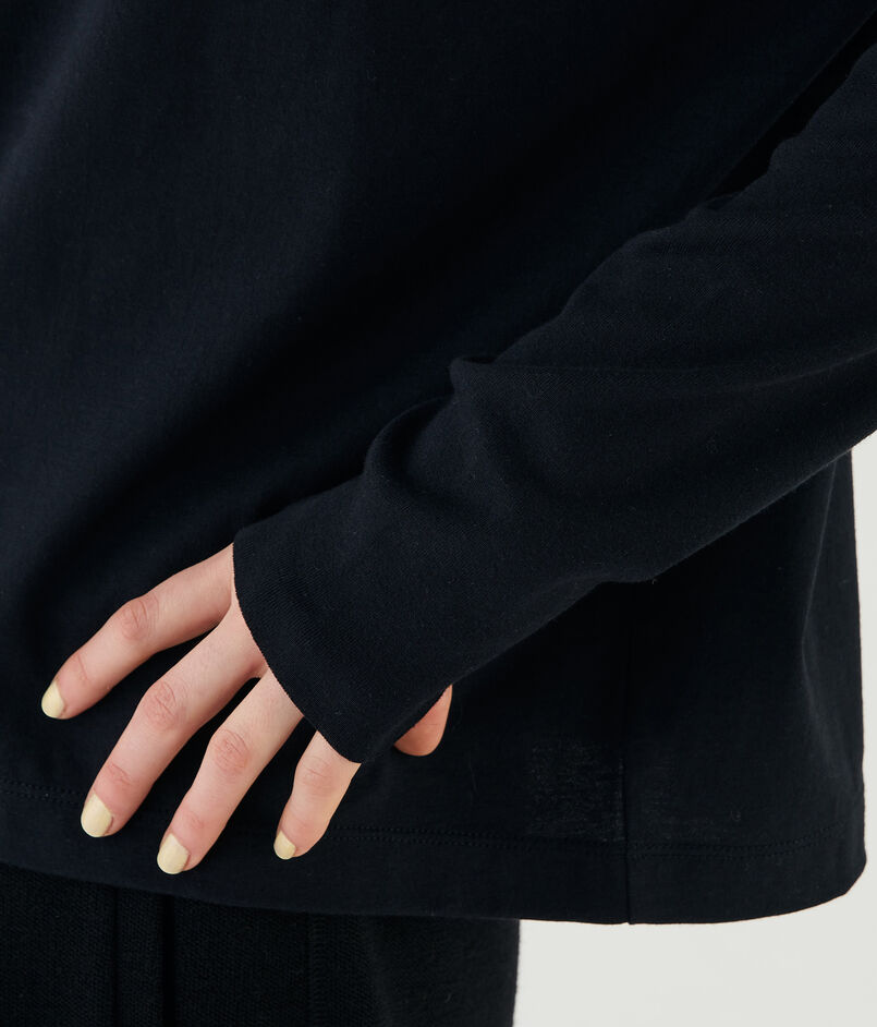 袖には共糸で作ったフライスを使用することで腕にフィットさせ、すっきりとしたバランスに仕上げています。