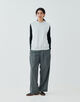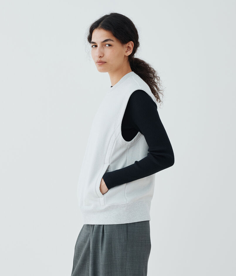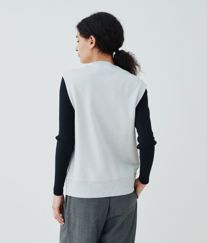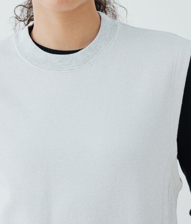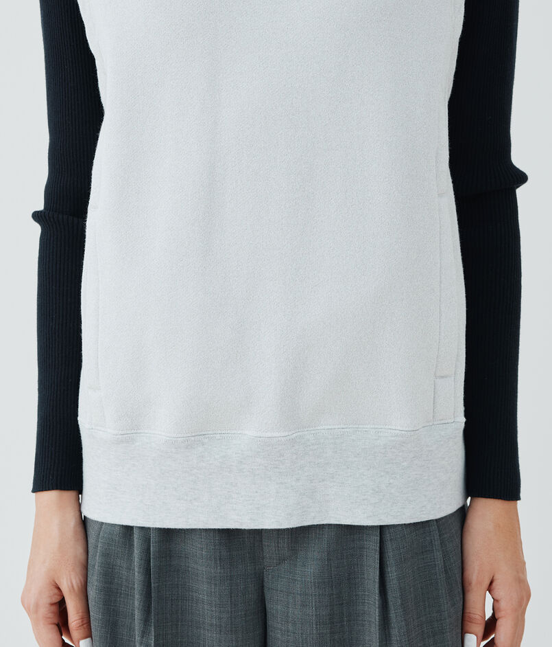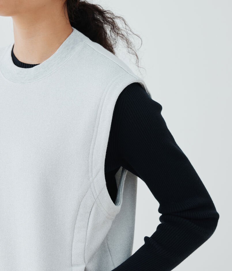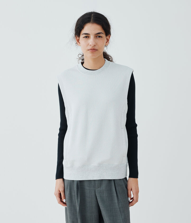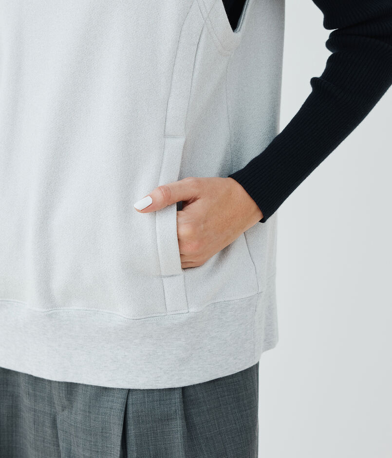 スリーブレスのベストはゆったりとしたシルエットに広めのアームホールでリラックス感のある着こなしが決まる一枚。