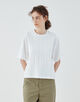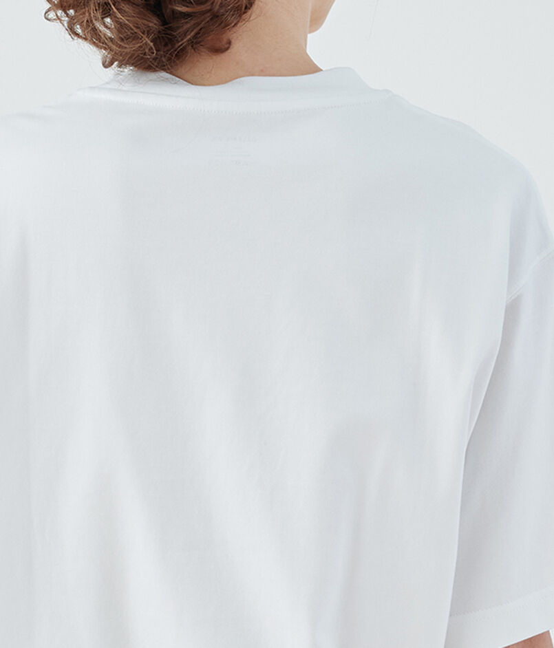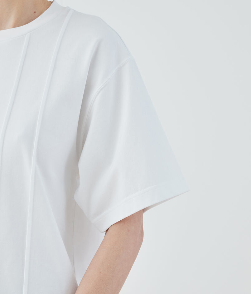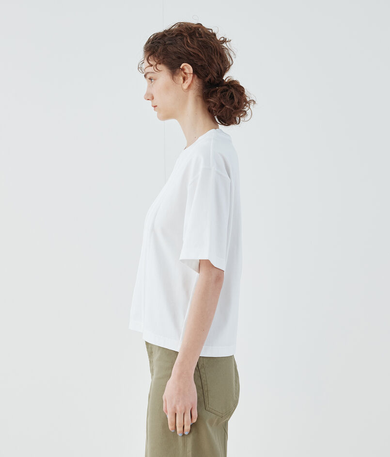 メンズのTシャツを着ているようなゆったりとしたシルエットにワイドなハーフスリーブで抜け感たっぷりの一着。